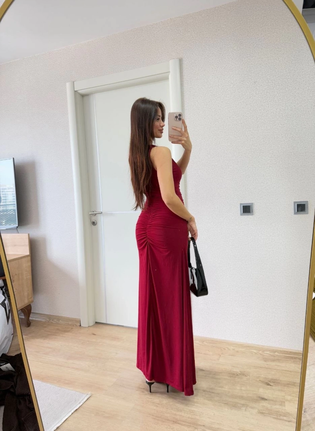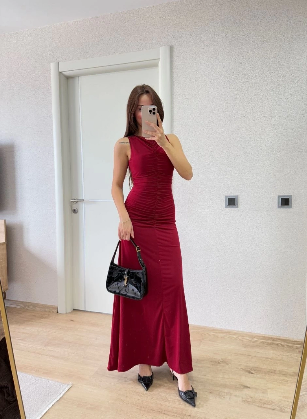 Detay | İçi Astarlı , Kolsuz , Uzun Elbise |