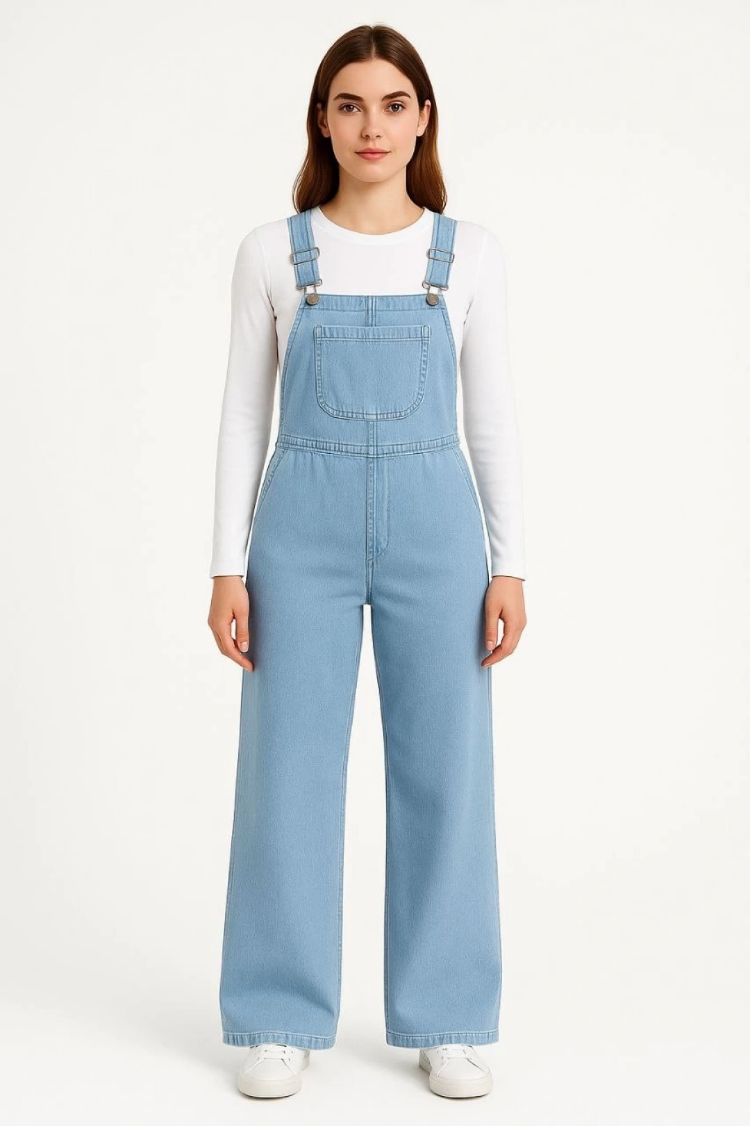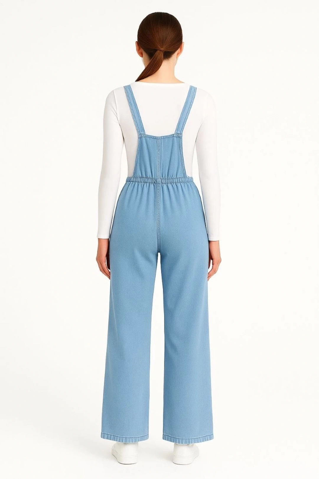 Sezon | 4 mevsimKadın Chambray Açık Mavi Denim Görünümlü Geniş Paça Salopet Tulum |