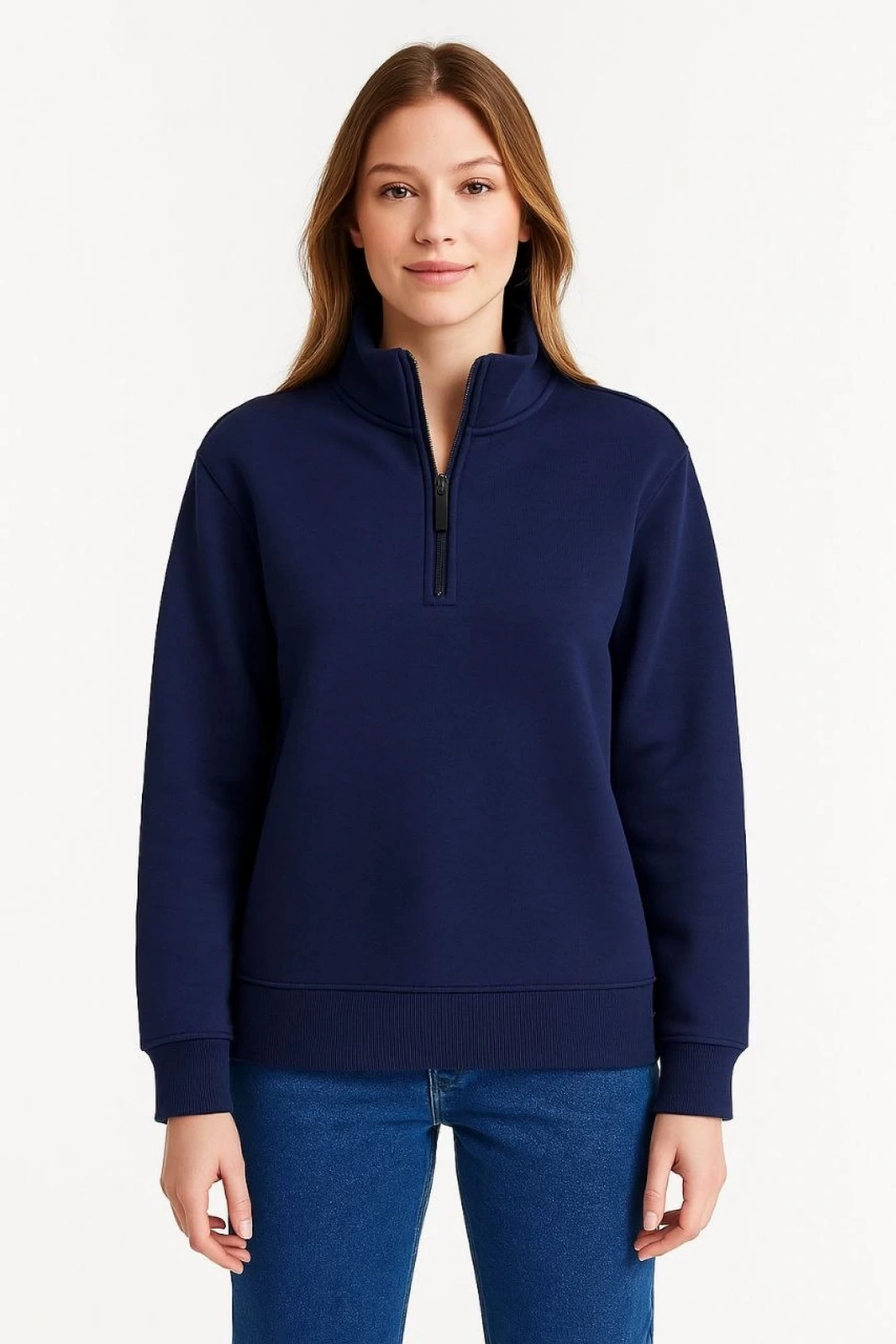 Detay | Dık Yaka , Kol,Etek Ribana , Uzun Kollu , Yarım Fermuarlı |