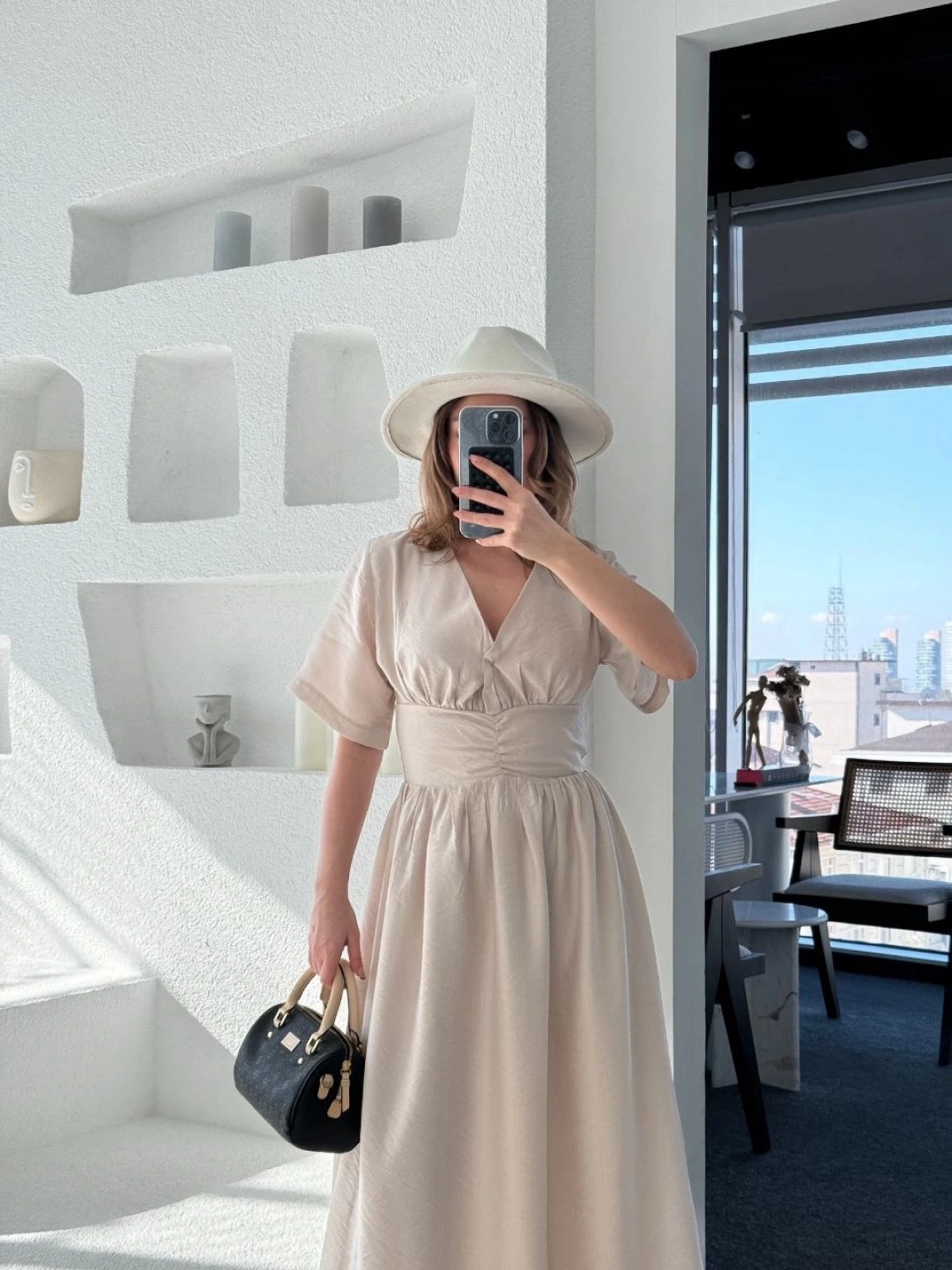 Detay | Arkası Fermuarlı , İçi Astarlı , Kısa Kollu |