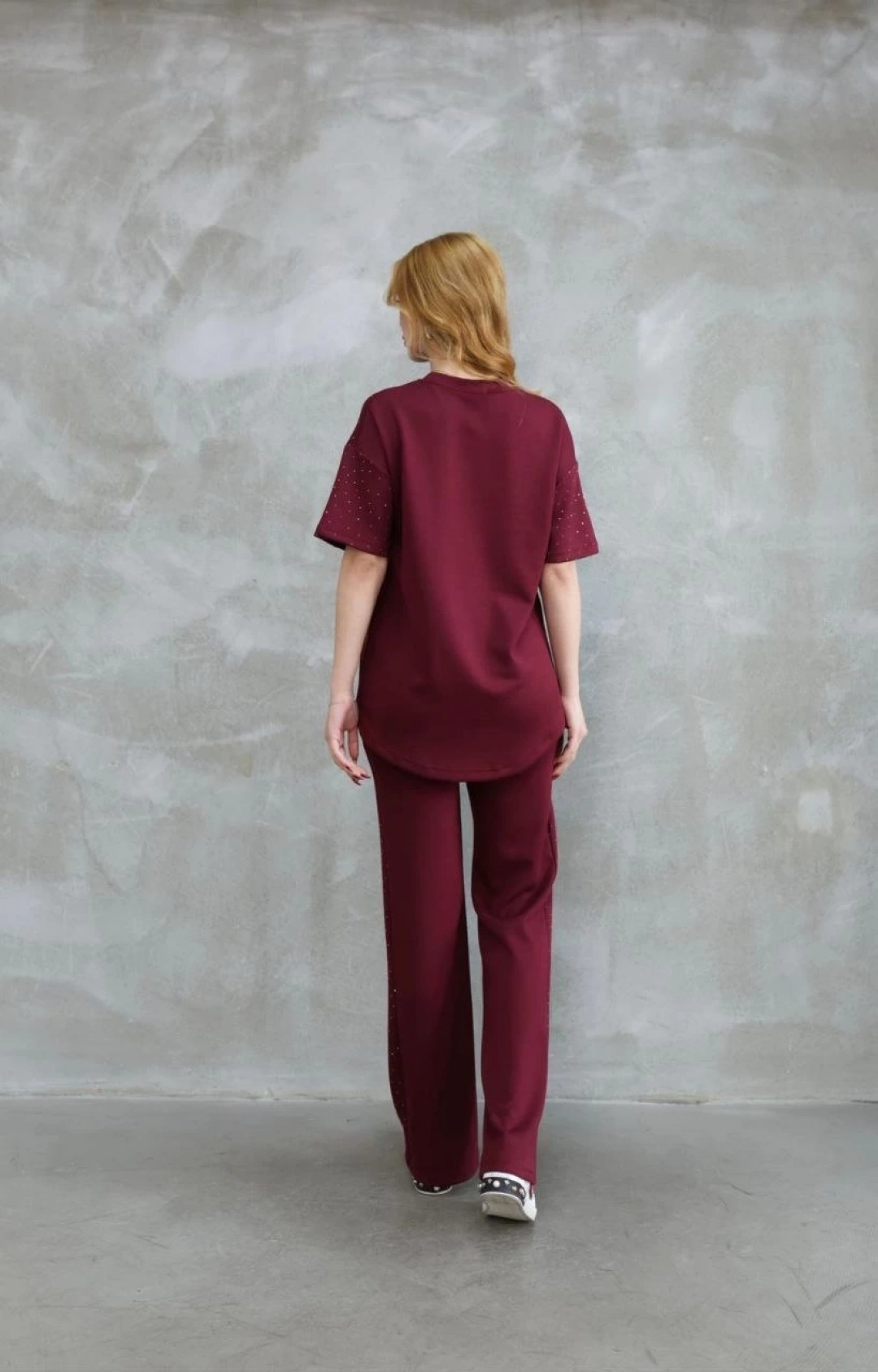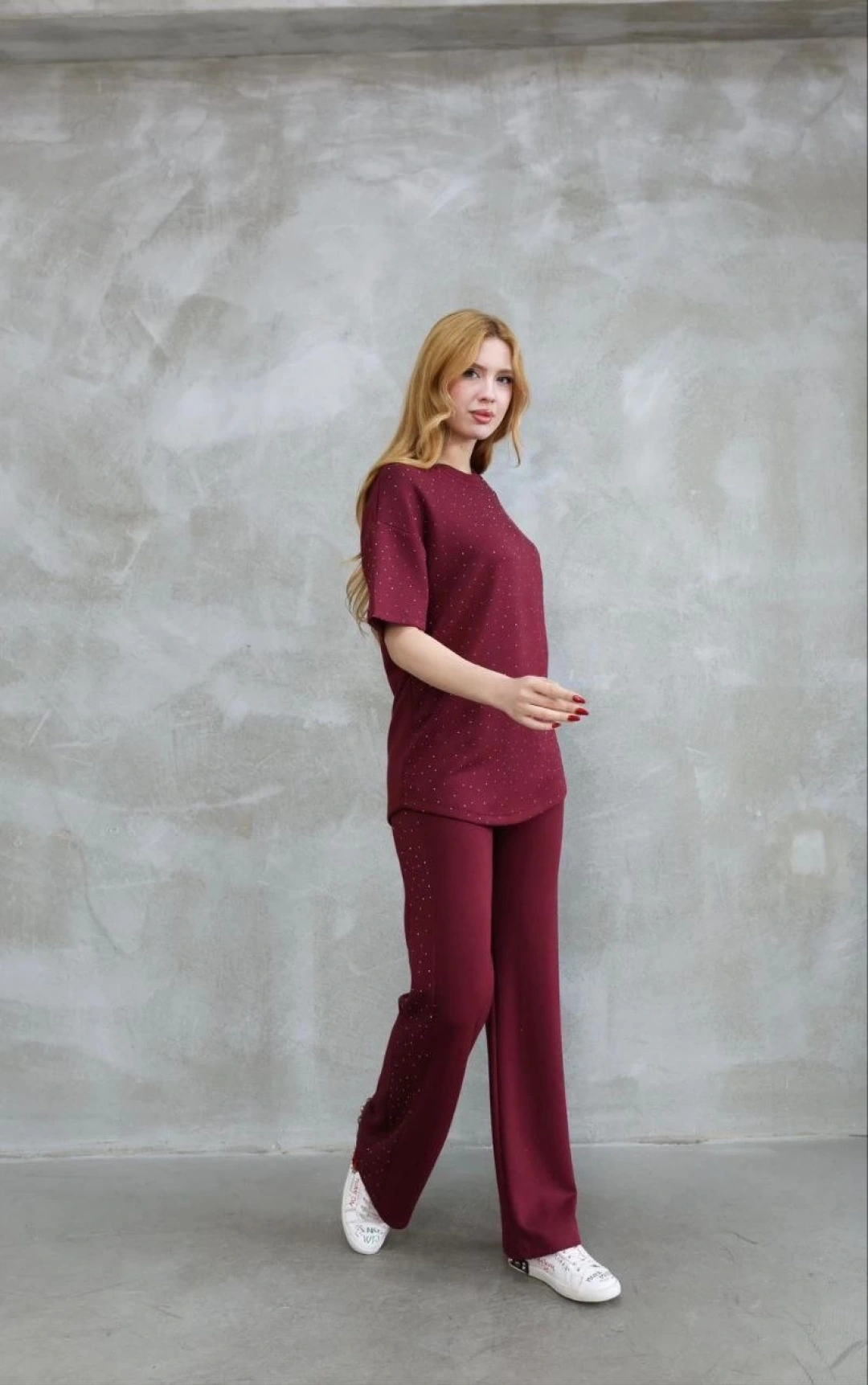 Detay | Bisiklet Yaka , Bol Paça , Boru Paça , Kısa Kollu , Taşlı |
