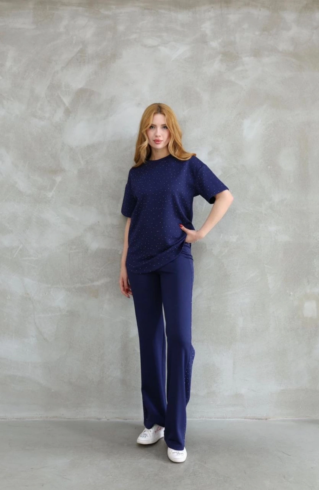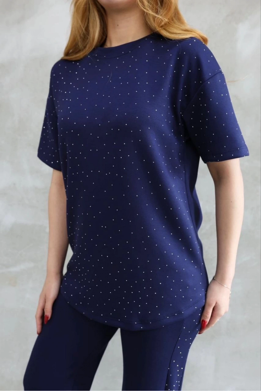 Detay | Bisiklet Yaka , Bol Paça , Boru Paça , Kısa Kollu , Taşlı |