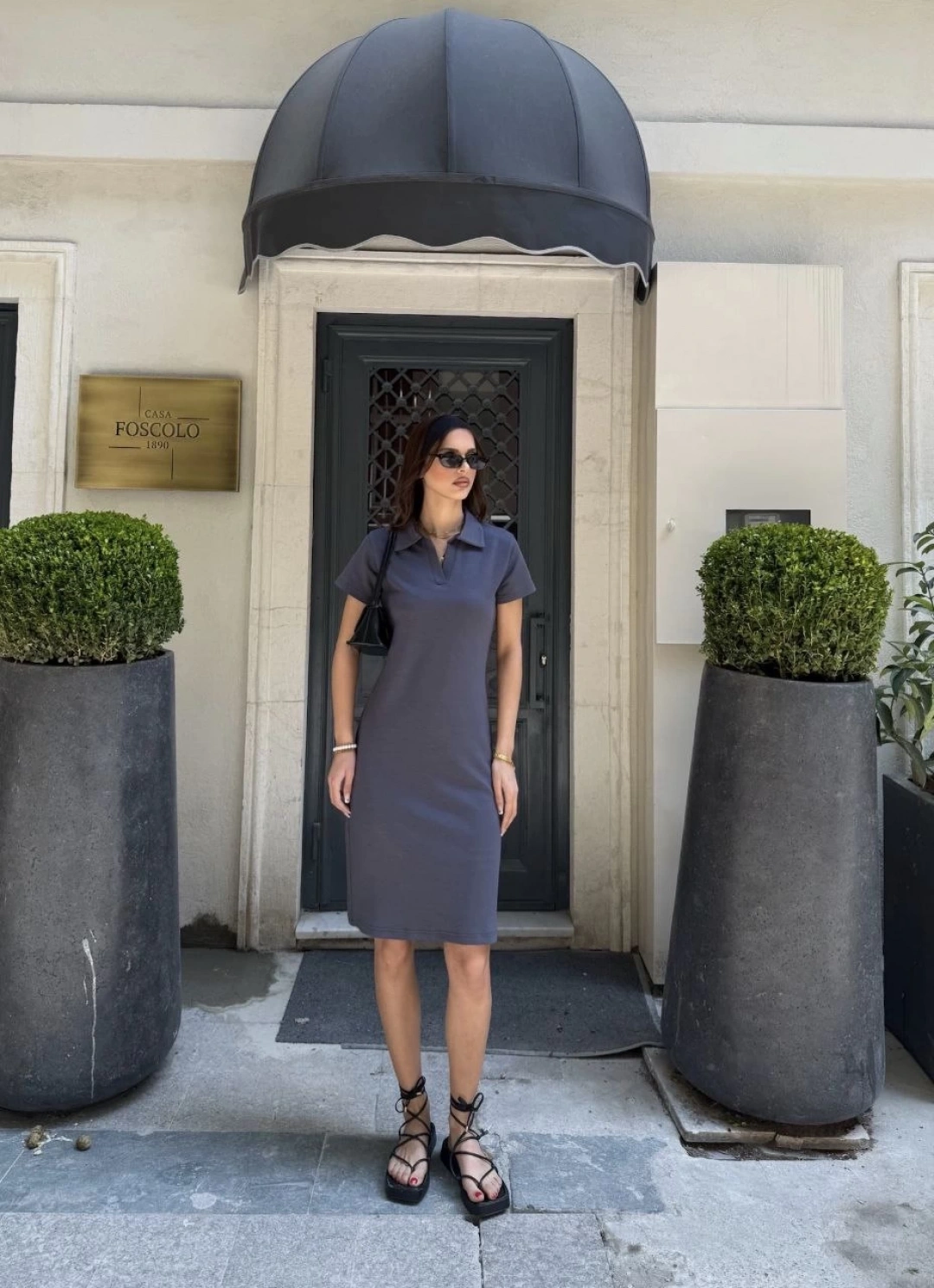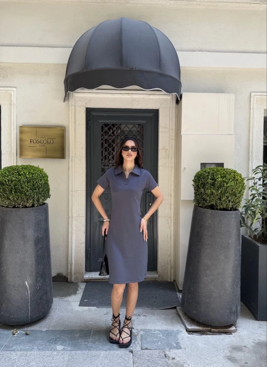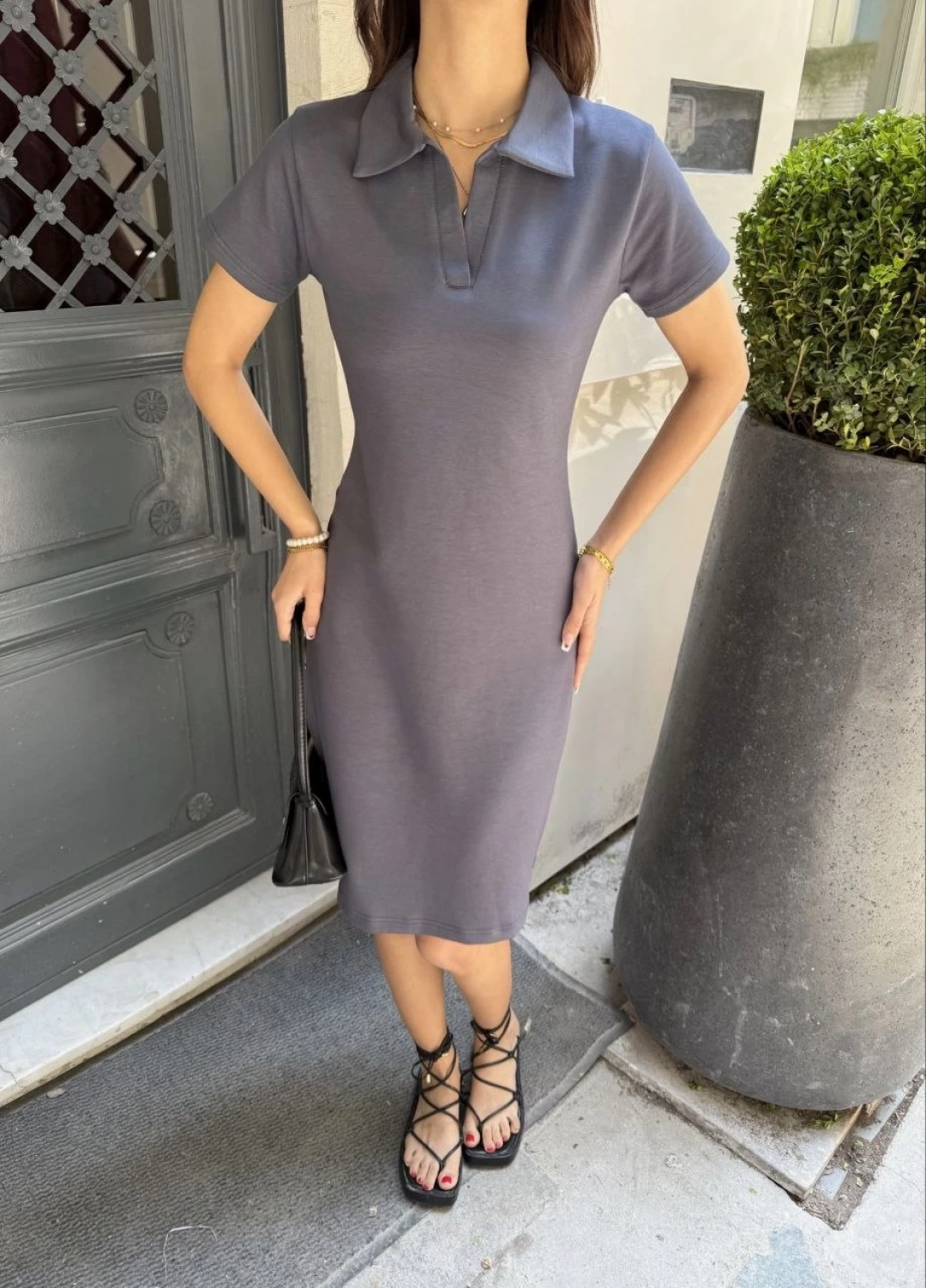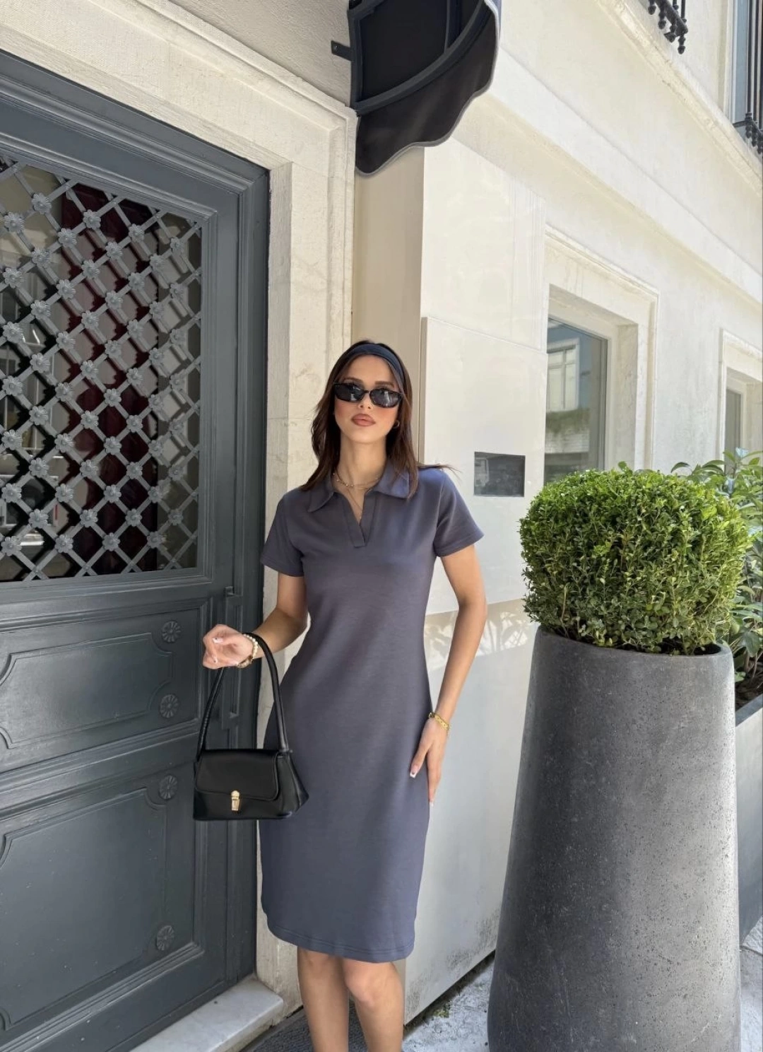 Detay | Diz Üstü Elbise , Kısa Kollu , Yakalı |