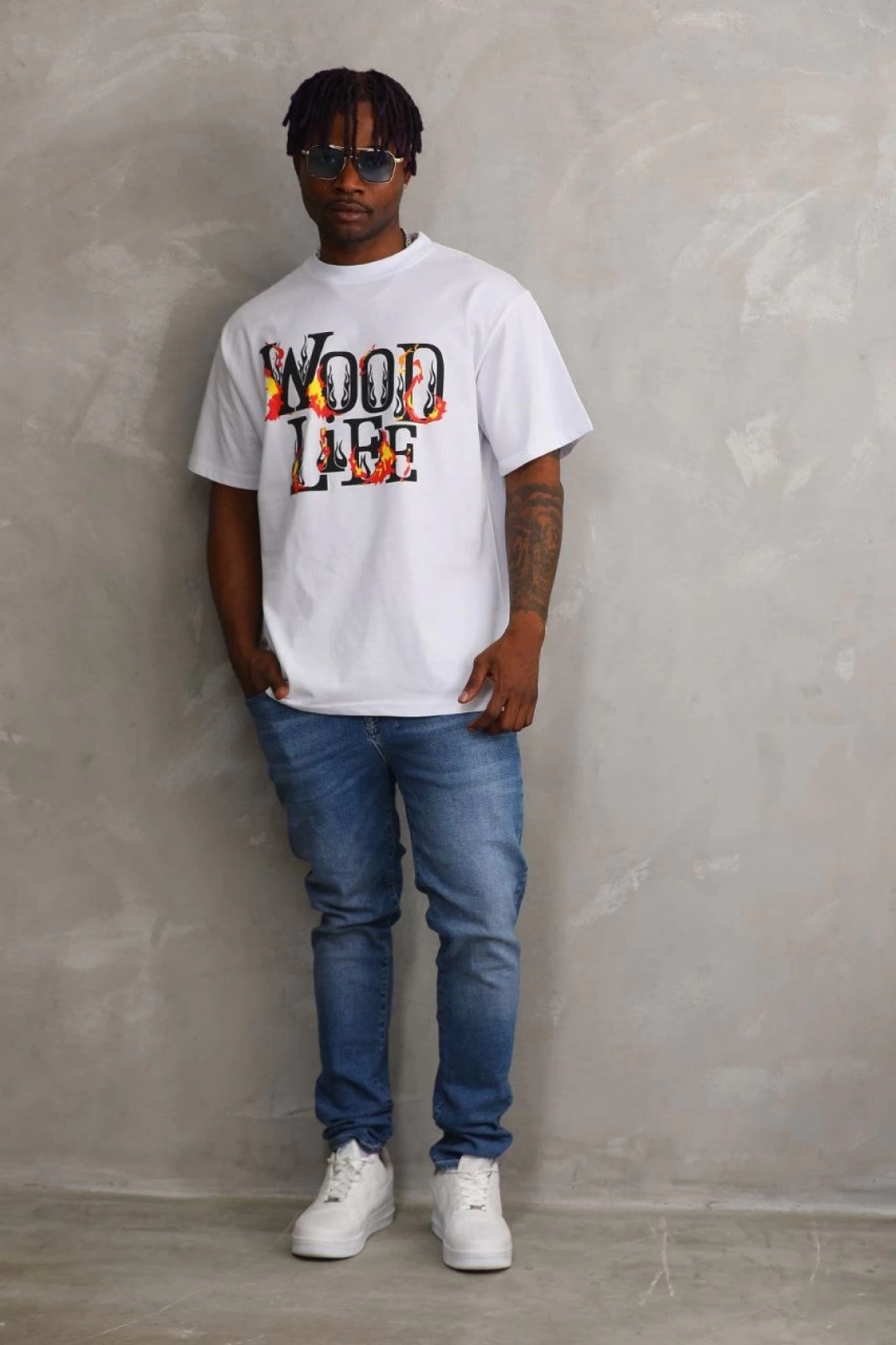 Unisex Baskılı Oversize T-Shirt - Beyaz