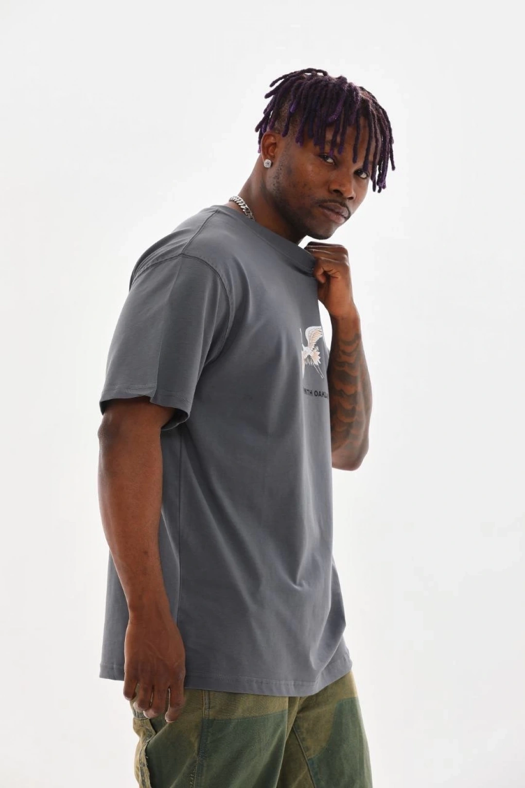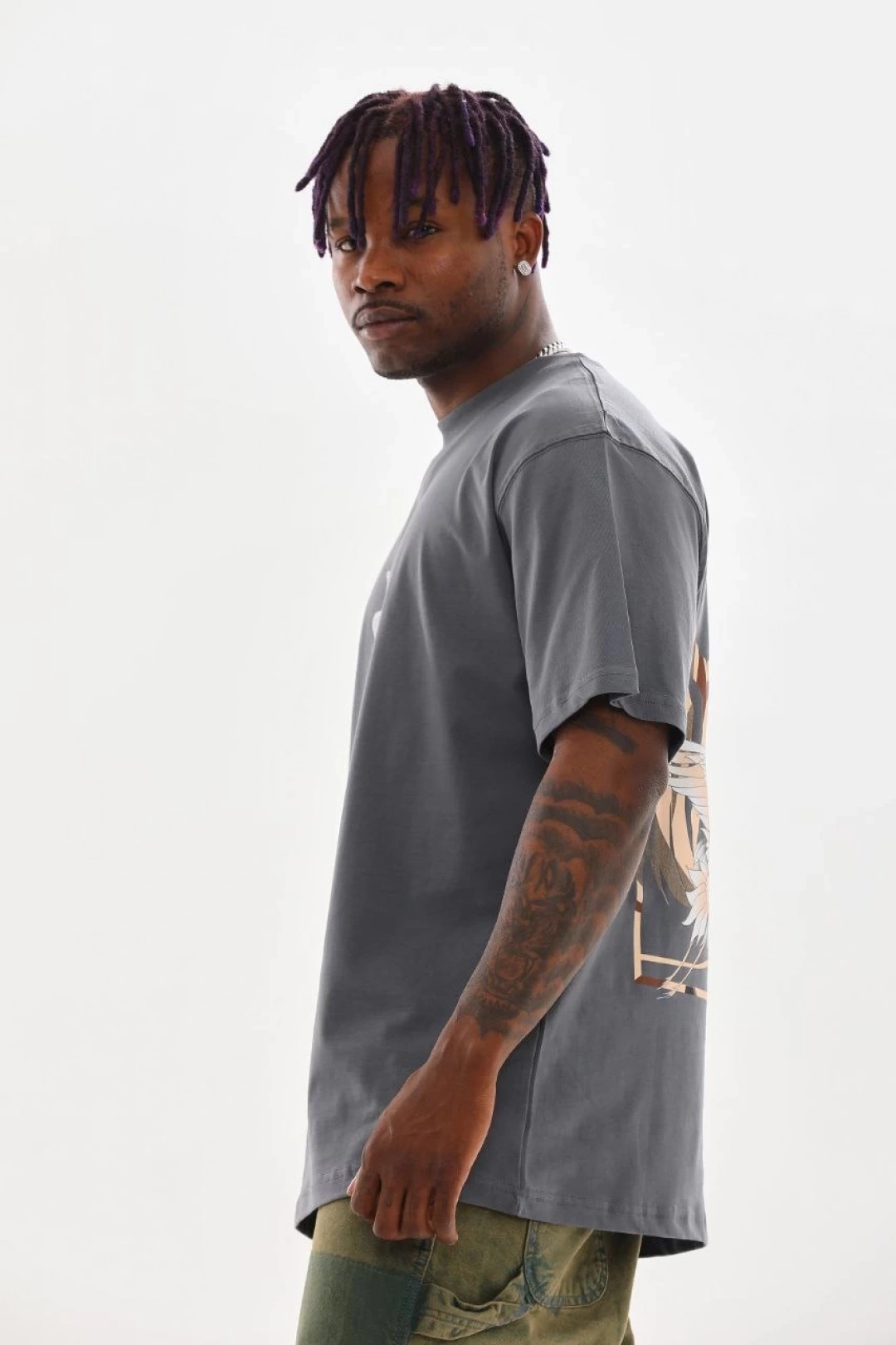 Erkek Oversize Baskılı Tişört – Golf GTI Retro Araba Desenli, Ön & Arka Dijital Baskı, Sokak Modası Stil - Gri
