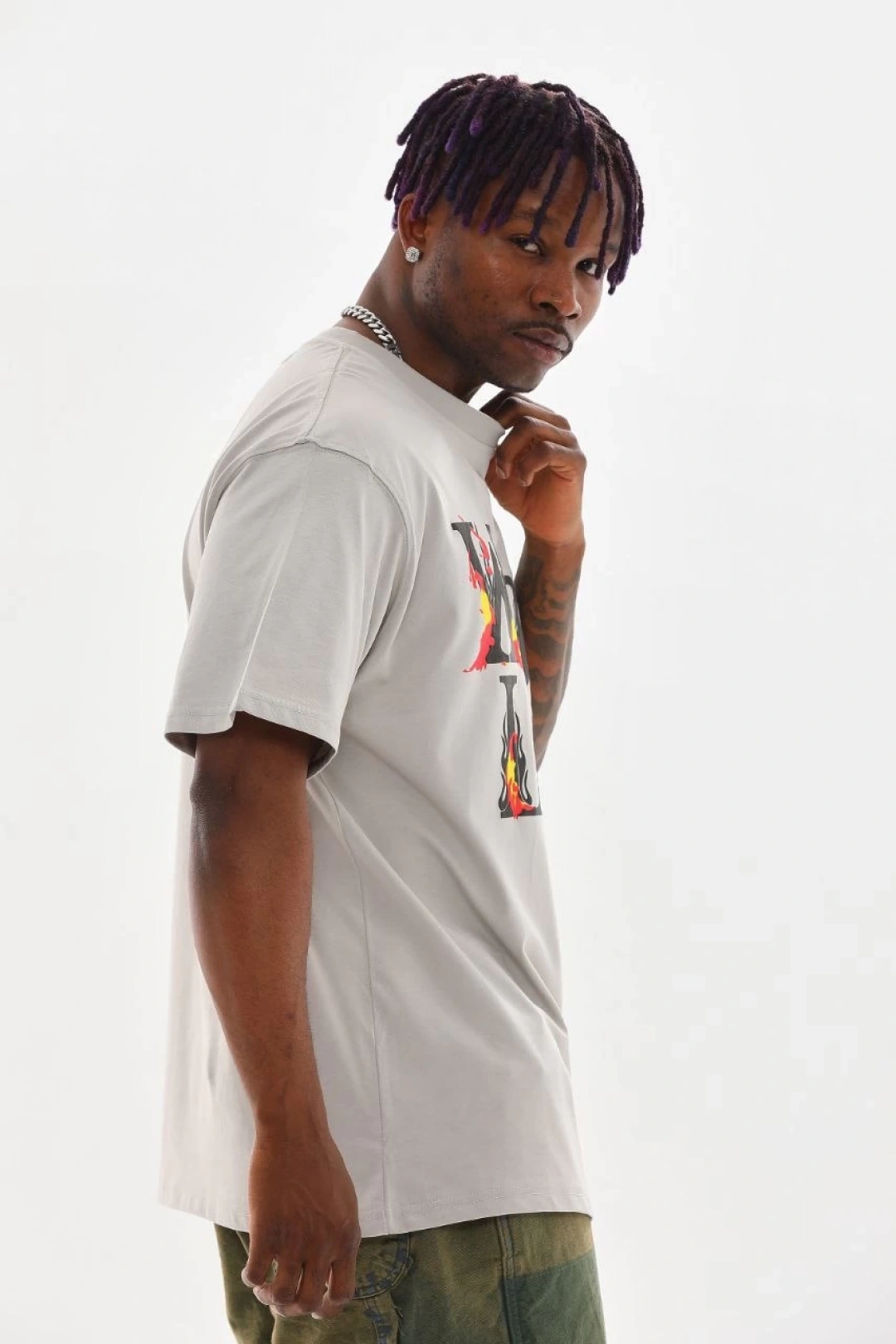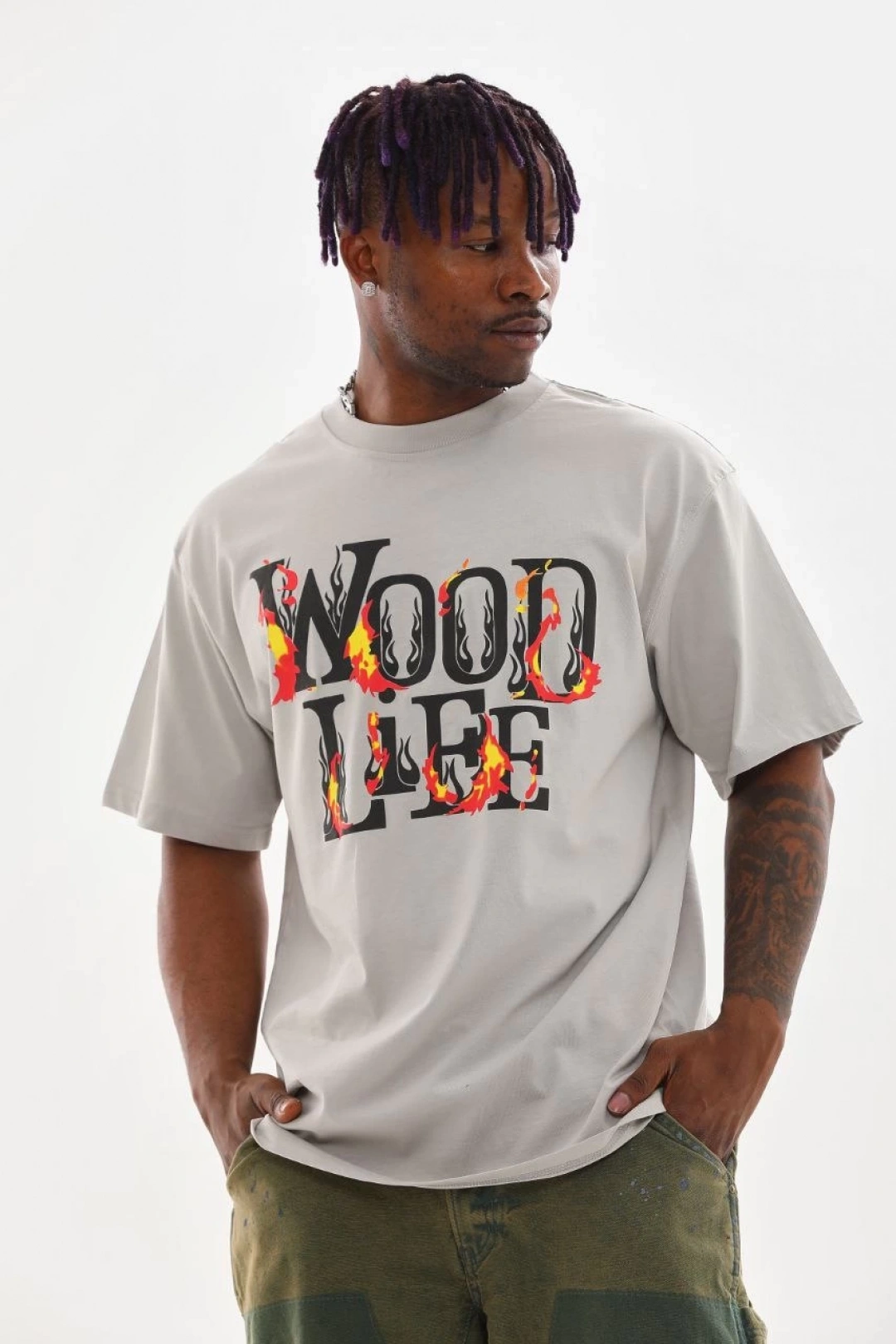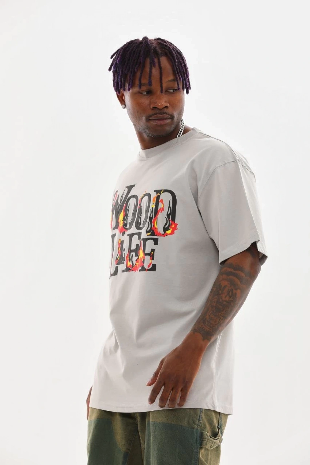 Erkek Oversize Baskılı Tişört – Golf GTI Retro Araba Desenli, Ön & Arka Dijital Baskı, Sokak Modası Stil - Gri