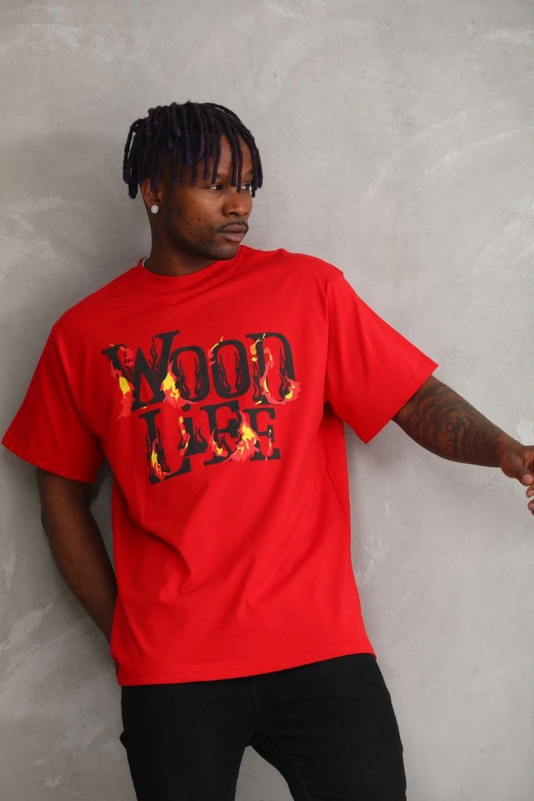 Unisex Baskılı Oversize T-Shirt - Kırmızı