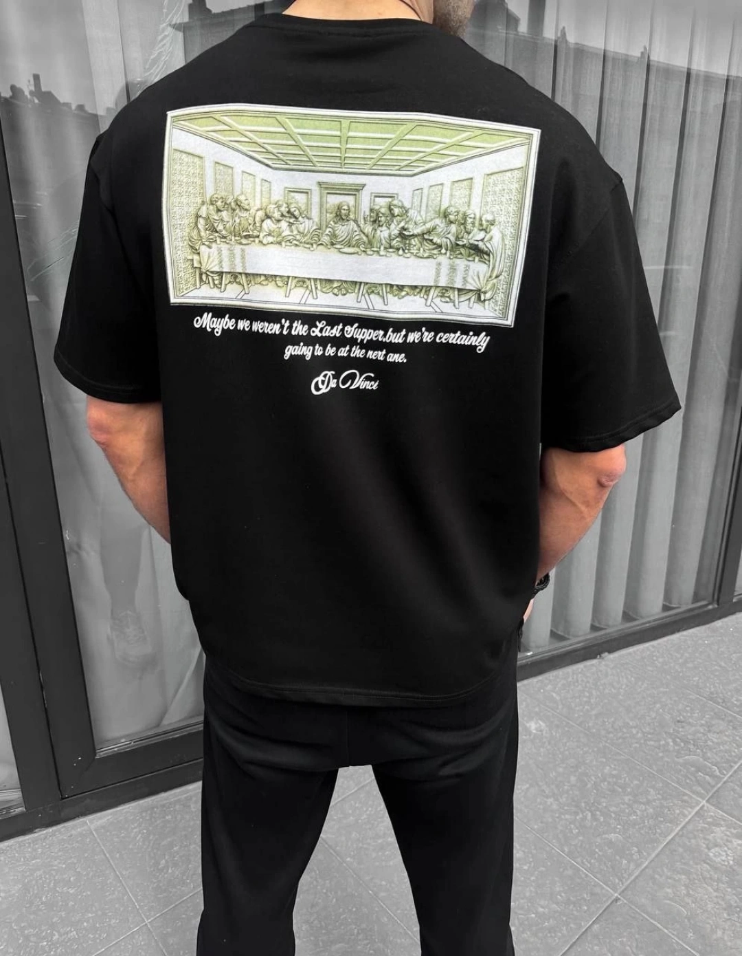 Benzersiz Sırt Baskılı Erkek Sokak Stili Bol Tişört - Nefes Alabilir Polyester, Makinede Yıkanabilir - Siyah