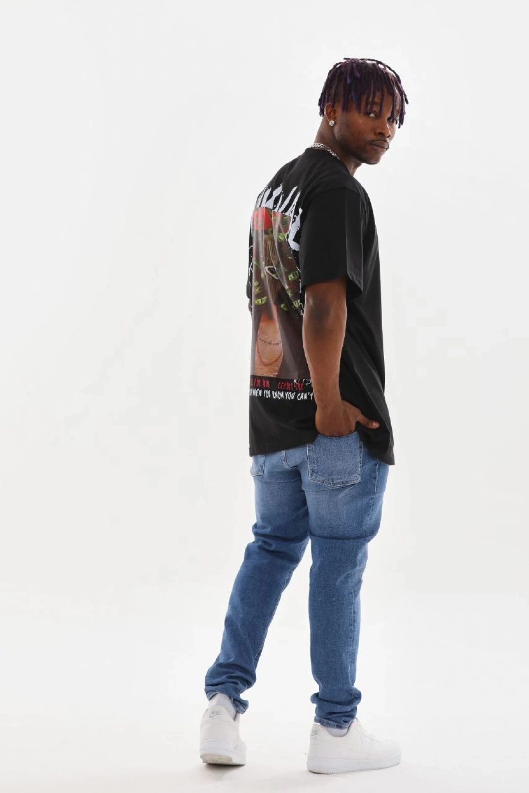 Unisex Baskılı Oversize T-Shirt - Siyah