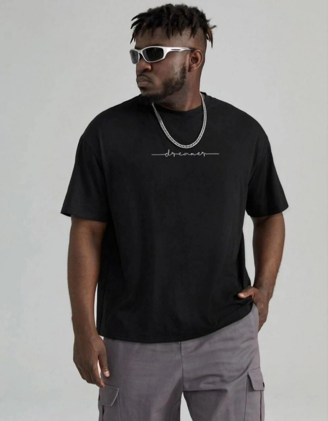 Eşsiz Baskı Tasarımlı Şık Büyük Beden Erkek Tişörtü - Rahat Polyester, Makinede Yıkanabilir, Yuvarlak Yaka - Her Mevsim İçin Mükemmel - Siyah