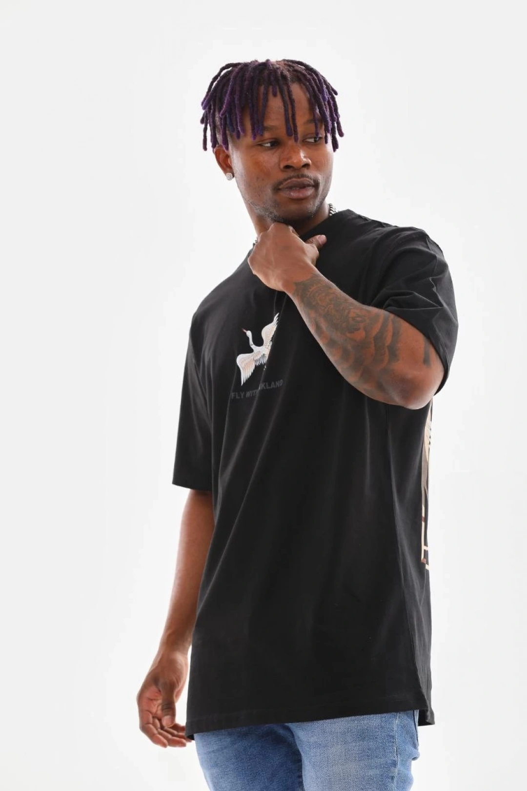 Unisex Baskılı Oversize T-Shirt - Siyah