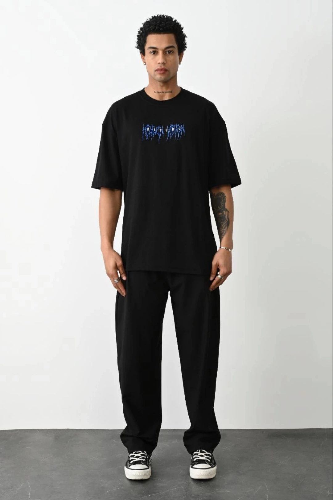 Unisex Baskılı Oversize T-Shirt - Siyah