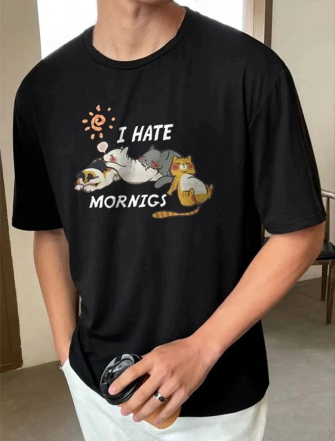 Erkekler İçin Tişörtler, Komik 'Multitasker' Baskılı Tişört, Yaz İlkbahar Sonbahar İçin Günlük Kısa Kollu Oversize Tişört, Hediye Olarak Üstler - Siyah