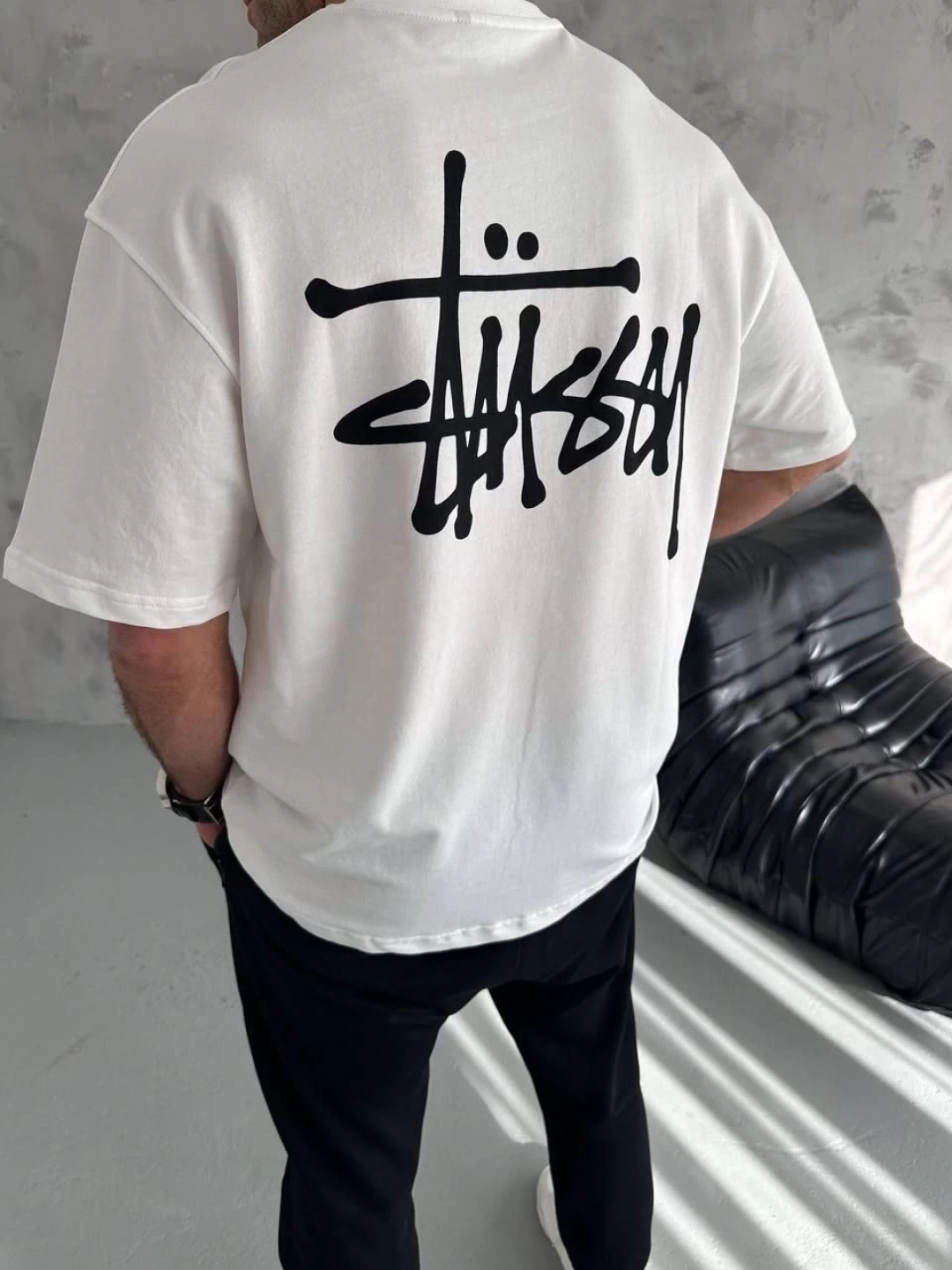 Eşsiz Baskı Tasarımlı Şık Büyük Beden Erkek Tişörtü - Rahat Polyester, Makinede Yıkanabilir, Yuvarlak Yaka - Her Mevsim İçin Mükemmel - Beyaz