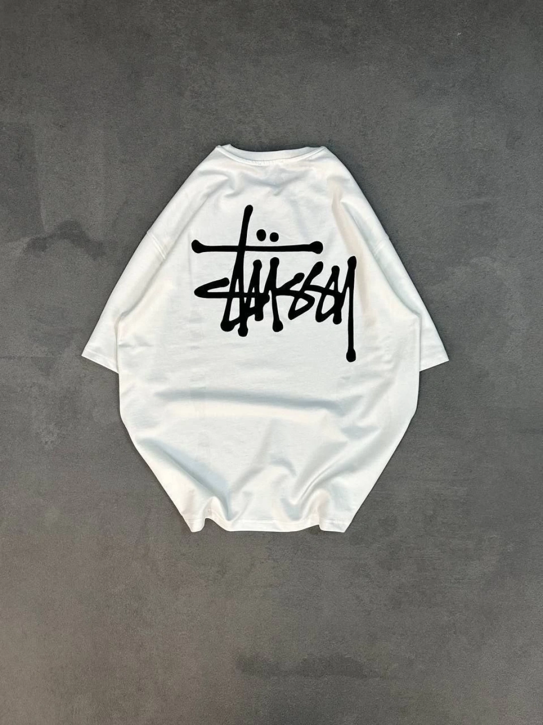 20/1 Penye Compack Ön Arka Ejder Baskılı Oversize Bisiklet Yaka T-shirt - Beyaz