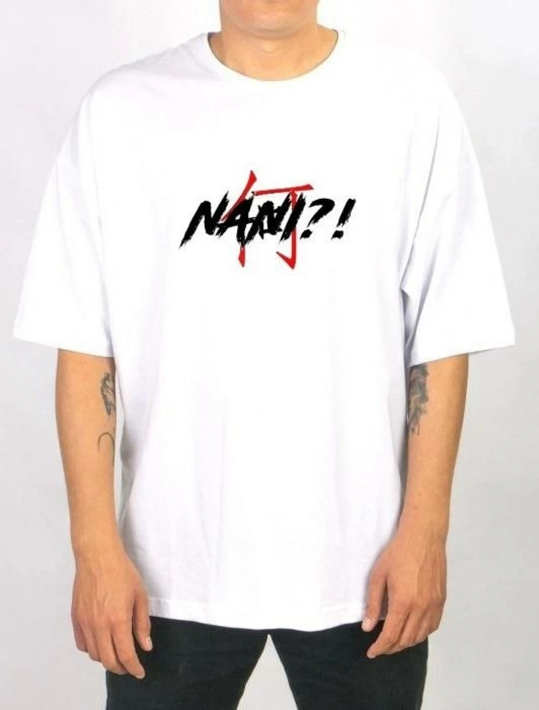 Unisex Bisiklet Yaka Baskılı Oversize T-Shirt - Beyaz