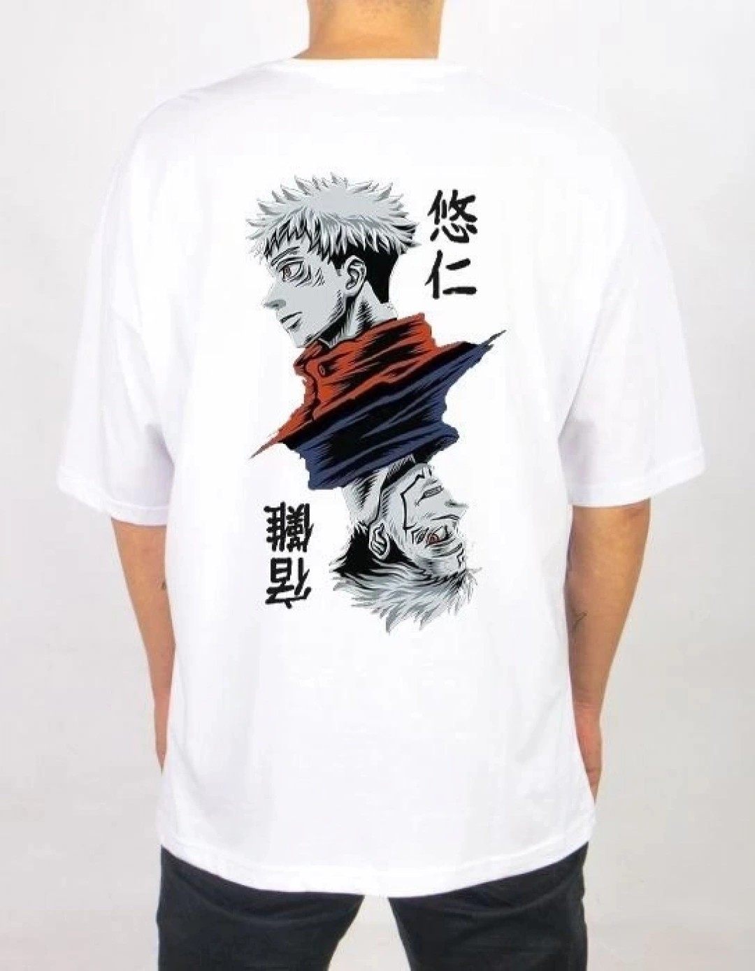 20/1 Penye Compack Ön Arka Ejder Baskılı Oversize Bisiklet Yaka T-shirt - Beyaz