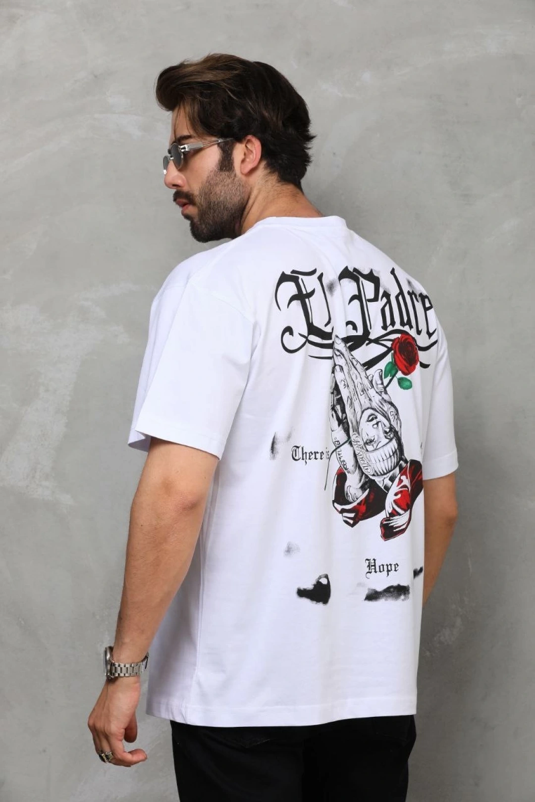 Erkek Sırt Golf Baskılı Oversize T-shirt - Beyaz