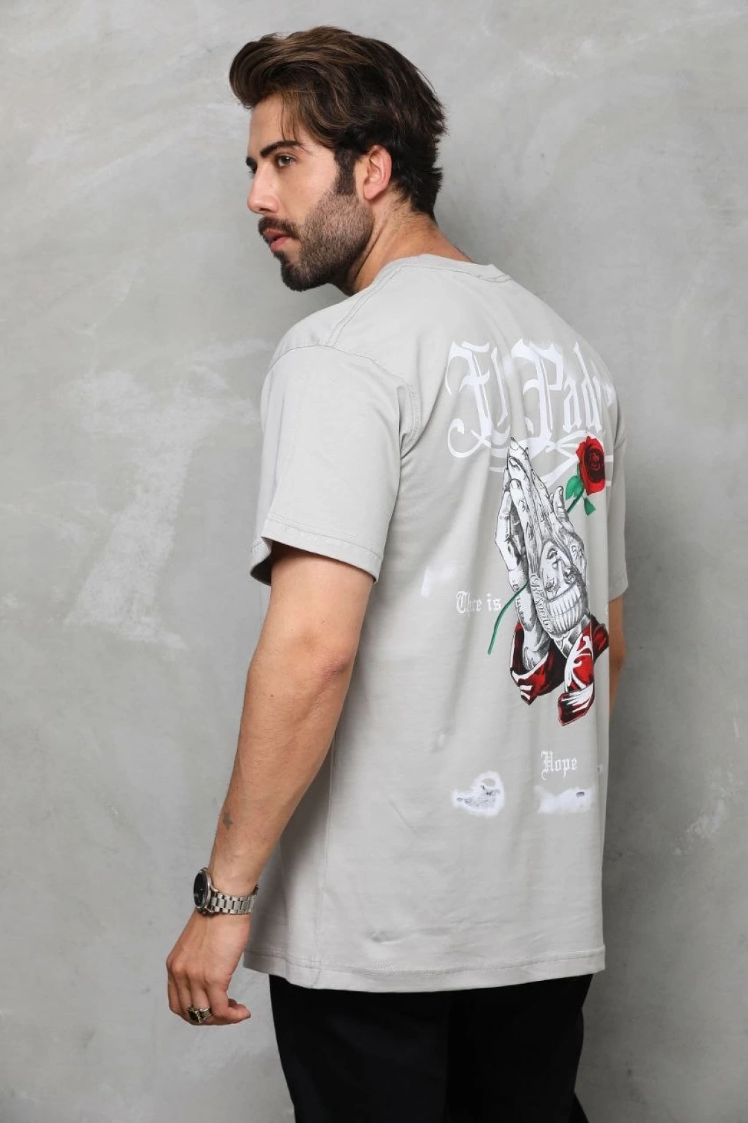 Erkek Sırt Golf Baskılı Oversize T-shirt - Gri