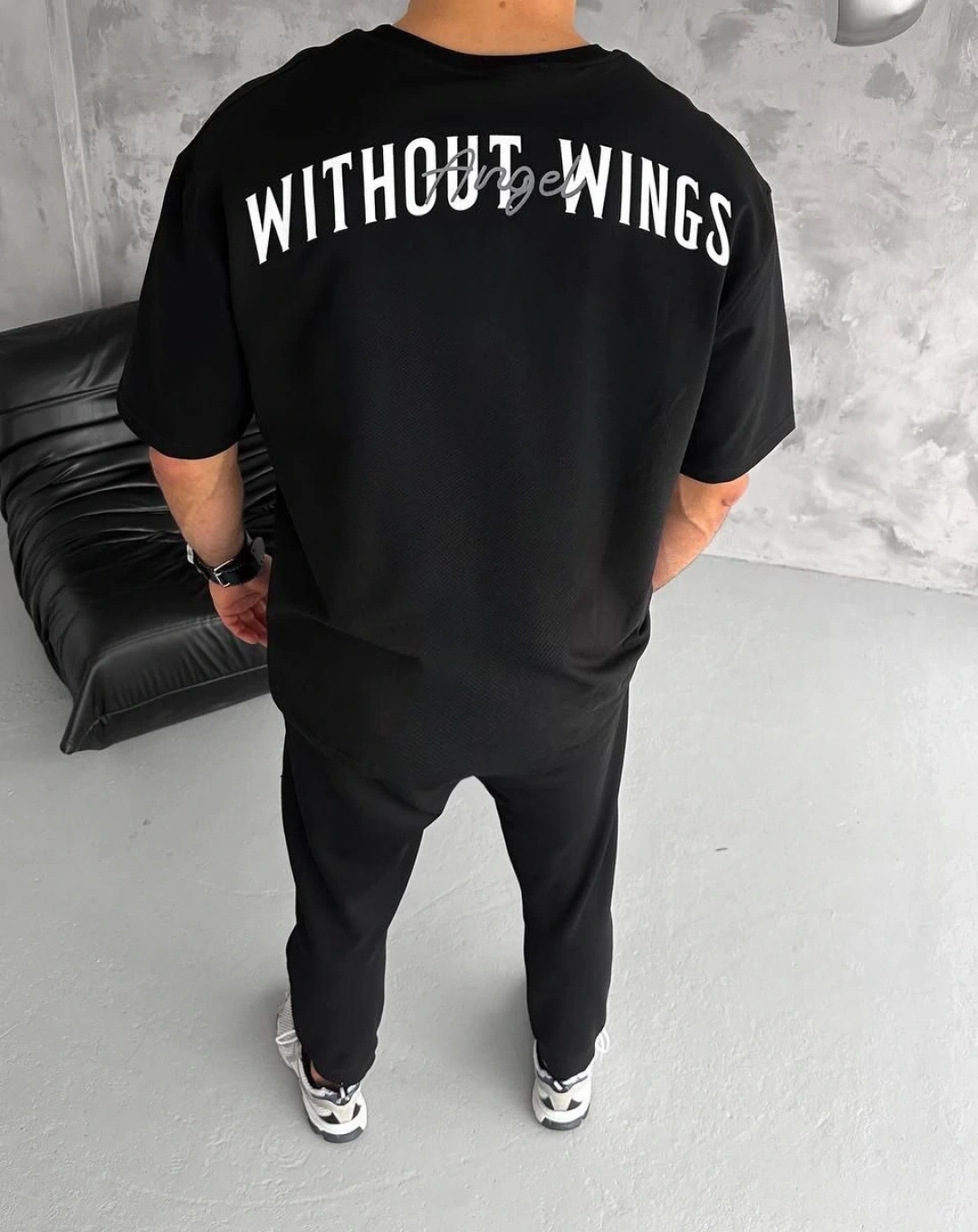 Benzersiz Sırt Baskılı Erkek Sokak Stili Bol Tişört - Nefes Alabilir Polyester, Makinede Yıkanabilir - Siyah