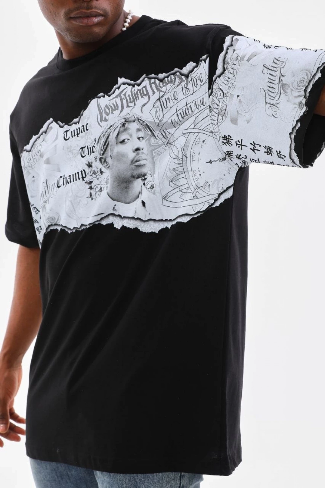 Benzersiz Sırt Baskılı Erkek Sokak Stili Bol Tişört - Nefes Alabilir Polyester, Makinede Yıkanabilir - Siyah
