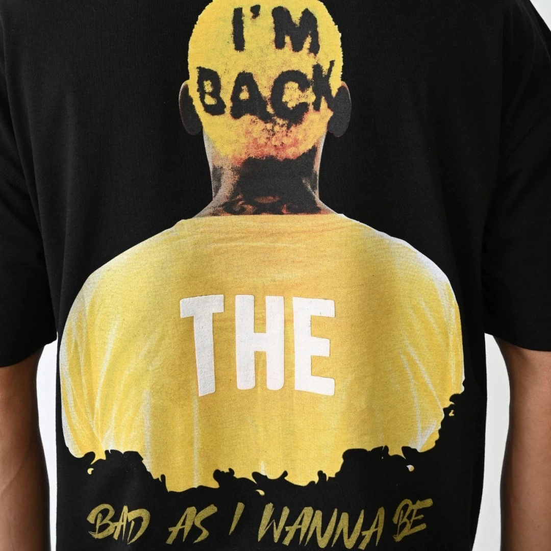 Benzersiz Sırt Baskılı Erkek Sokak Stili Bol Tişört - Nefes Alabilir Polyester, Makinede Yıkanabilir - Siyah