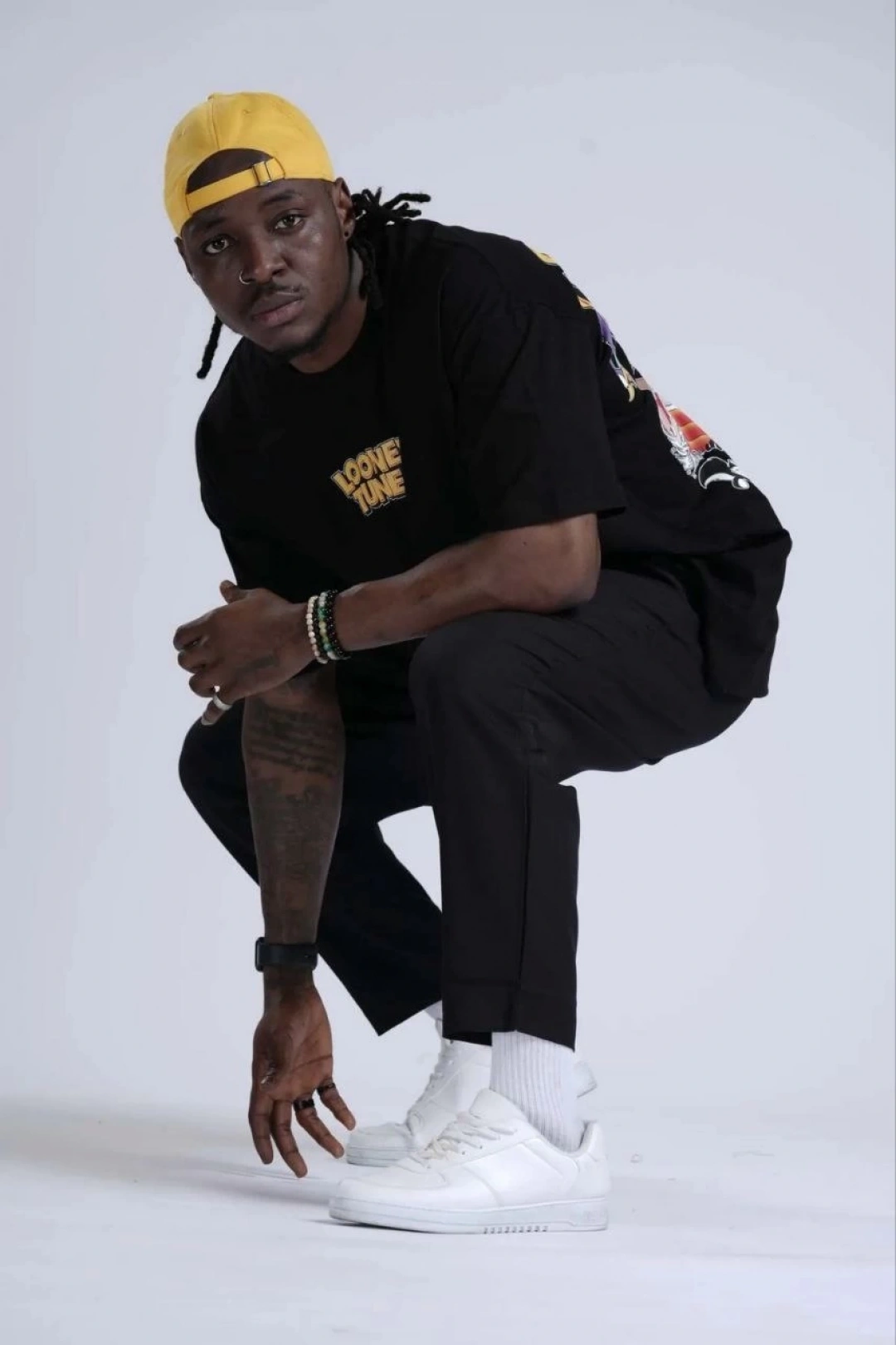 Benzersiz Sırt Baskılı Erkek Sokak Stili Bol Tişört - Nefes Alabilir Polyester, Makinede Yıkanabilir - Siyah