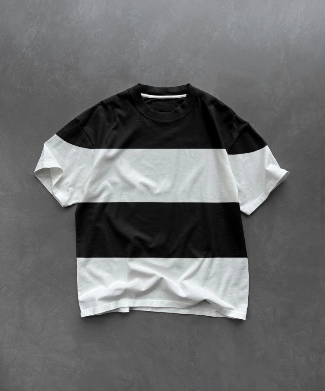 Unisex Bisiklet Yaka Parçalı T-Shirt - Siyah
