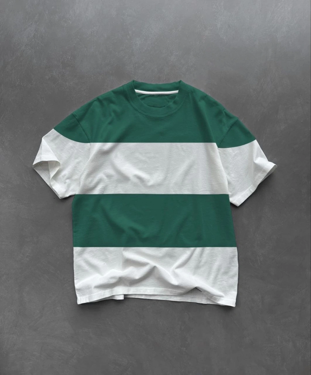 Unisex Bisiklet Yaka Parçalı T-Shirt - Yeşil