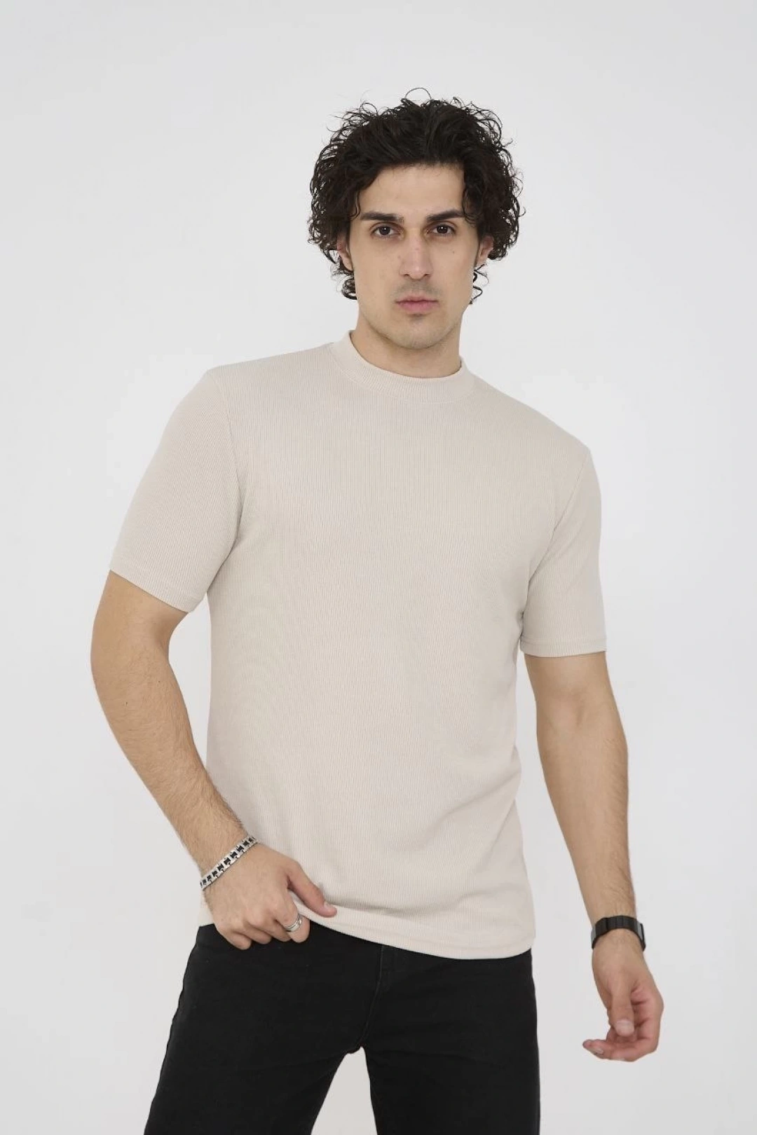 Unisex Bisiklet Yaka Slim fit T-Shirt- Bej