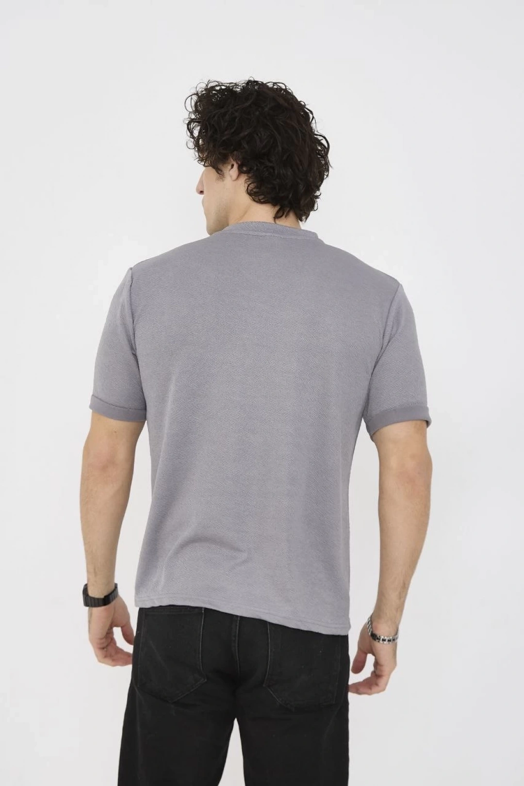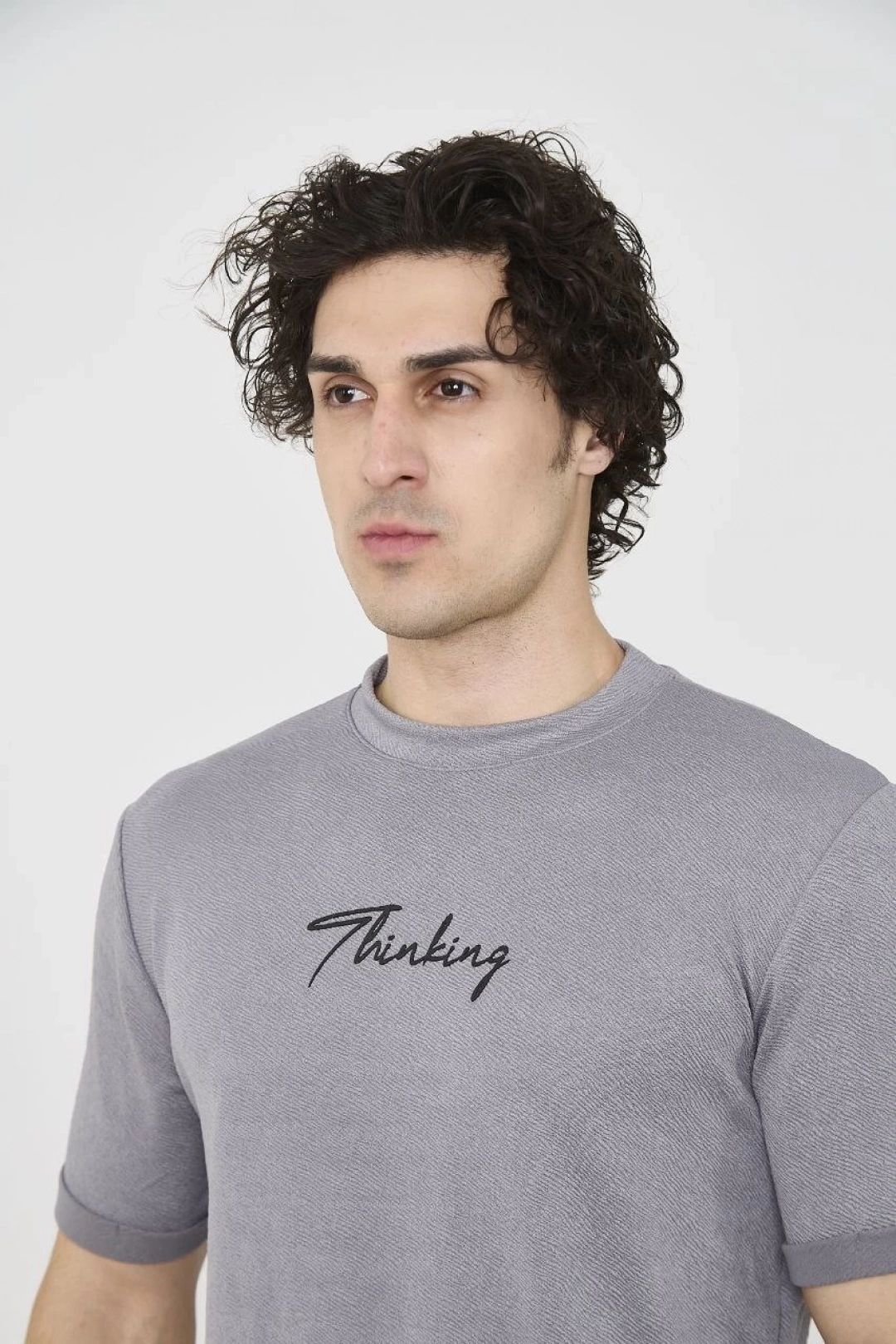 Unisex Bisiklet Yaka Slim fit T-Shirt- Gri
