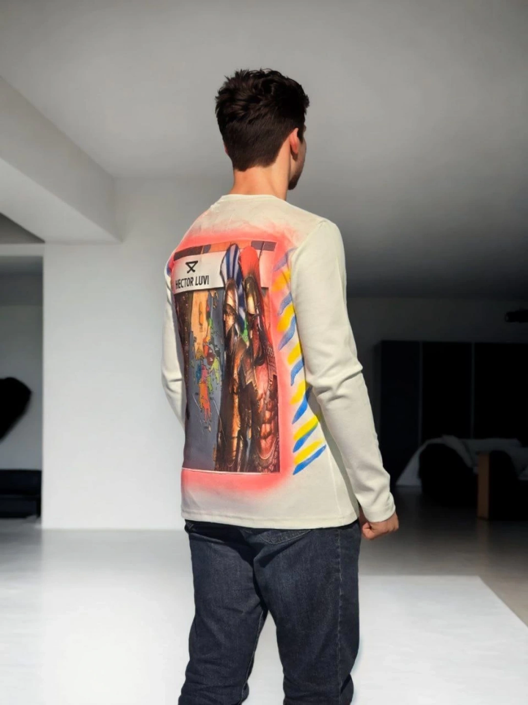 Unisex Bisiklet Yaka Uzun Kollu T-Shirt - Beyaz