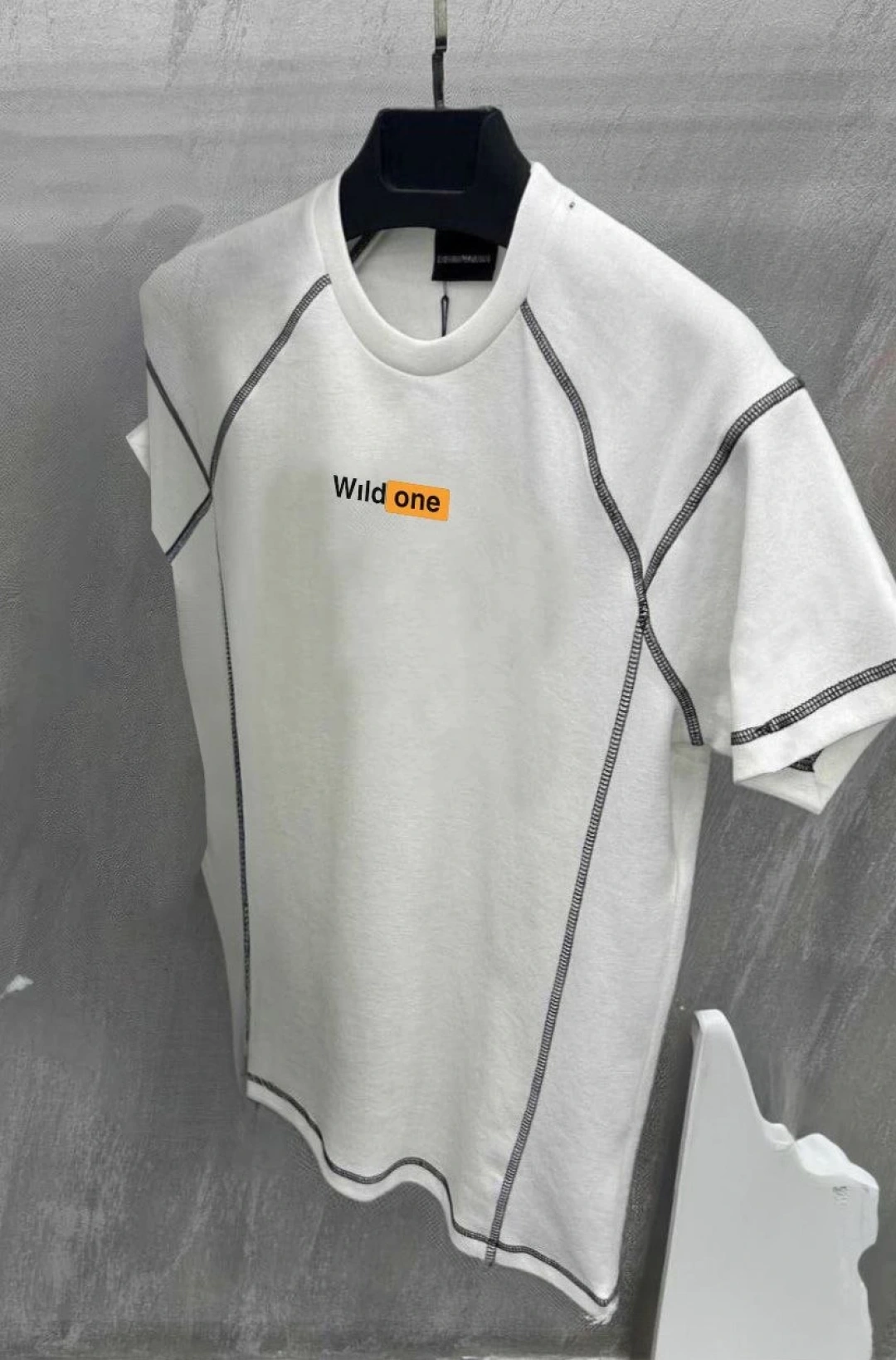 Unisex Dikişli Baskılı Oversize T-Shirt - Beyaz