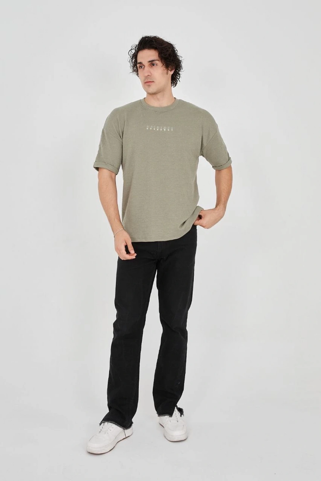 Unisex Jakar Kumaş Rahat Kol T-Shirt - Açık Yeşil