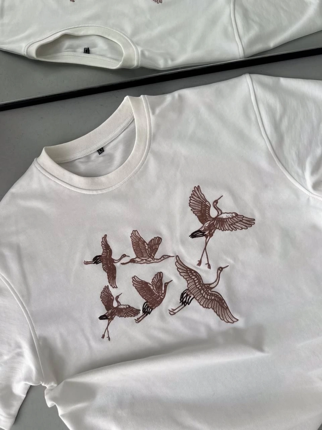 Unisex Nakış İşlemeli T-Shirt - Beyaz