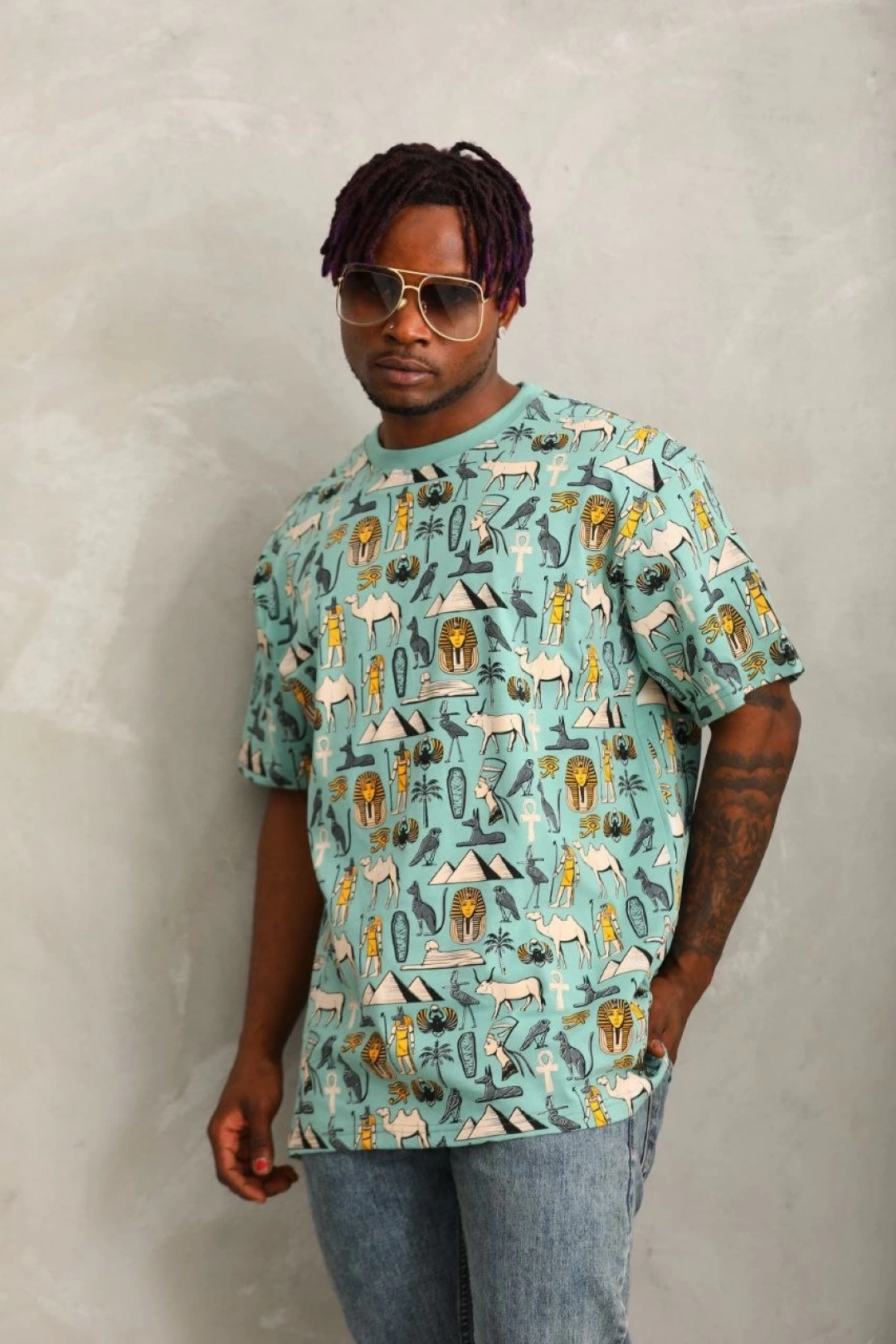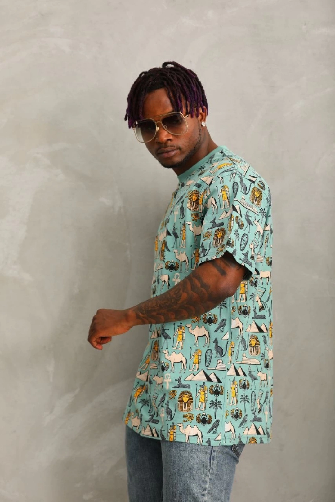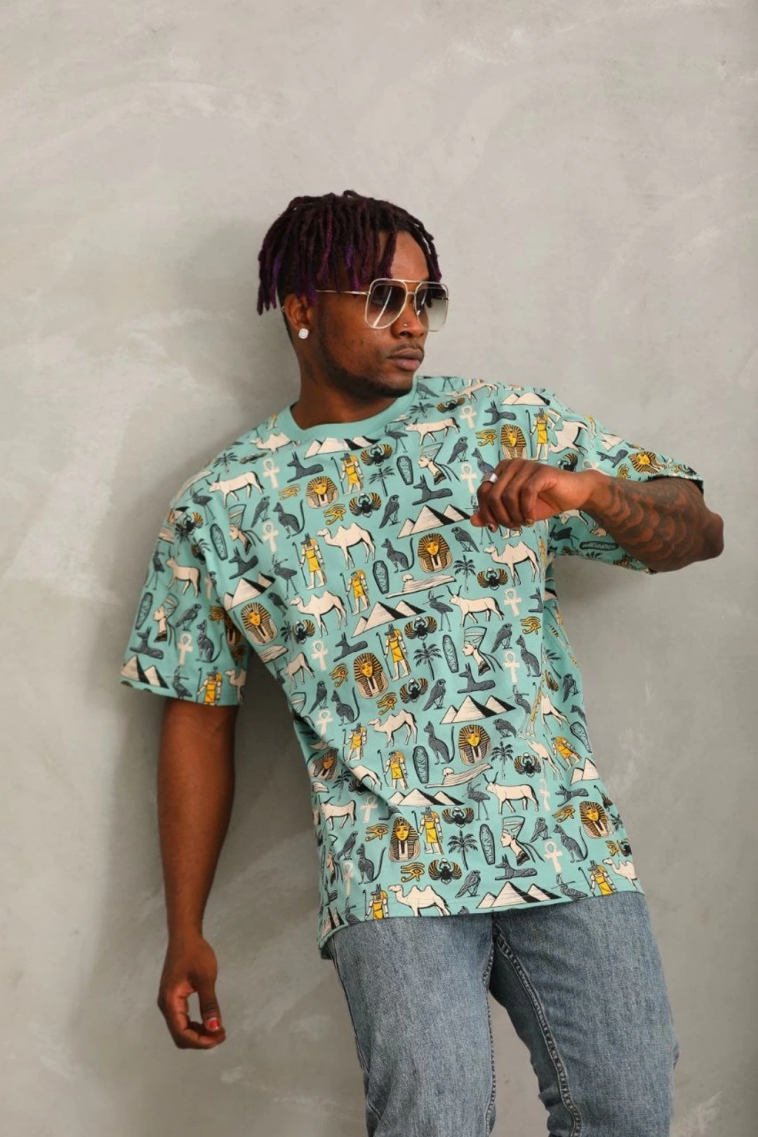Unisex Oversize Baskılı Bisiklet Yaka T-Shirt - Mint Yeşili