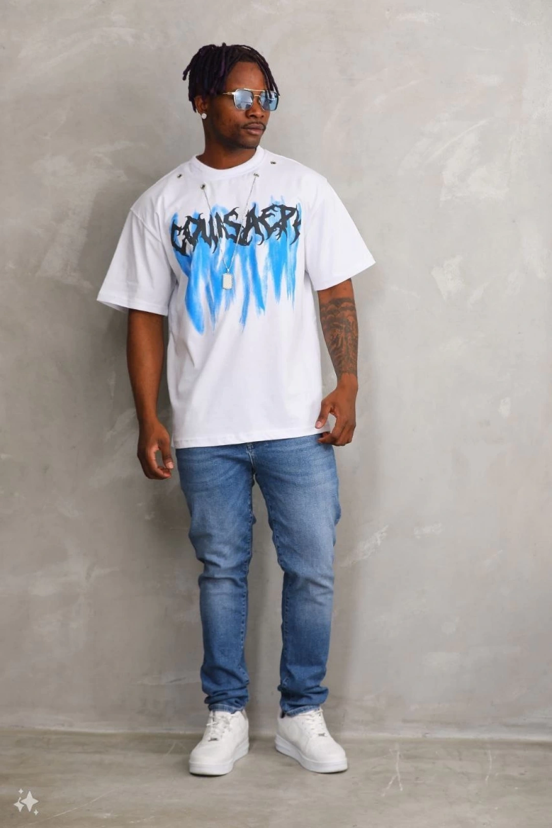 Unisex Oversize Kolye Dahil T-Shirt - Beyaz