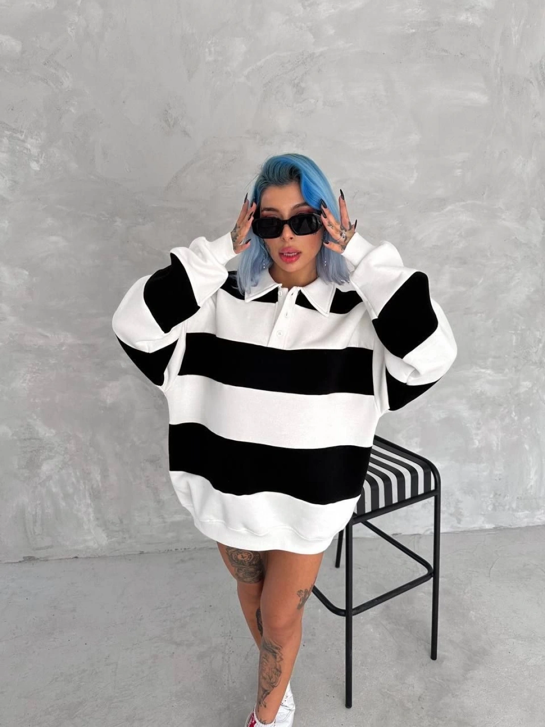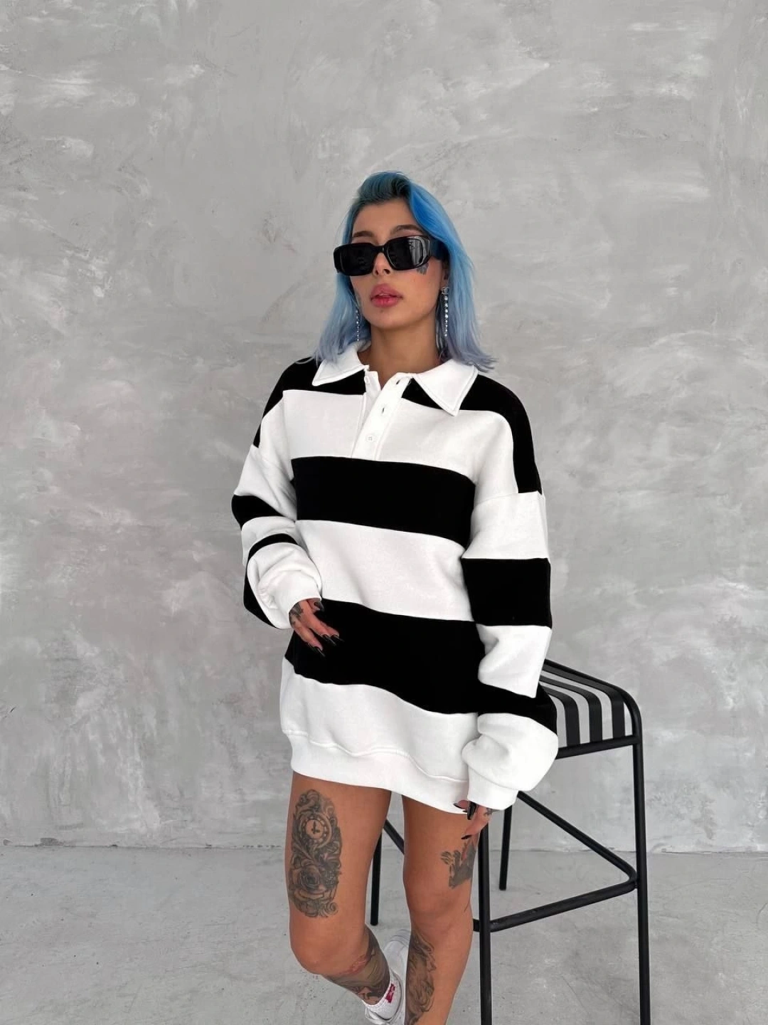 Kadın Üç İplik Dık Yaka Yarım Fermuarlı SweatShirt - Beyaz