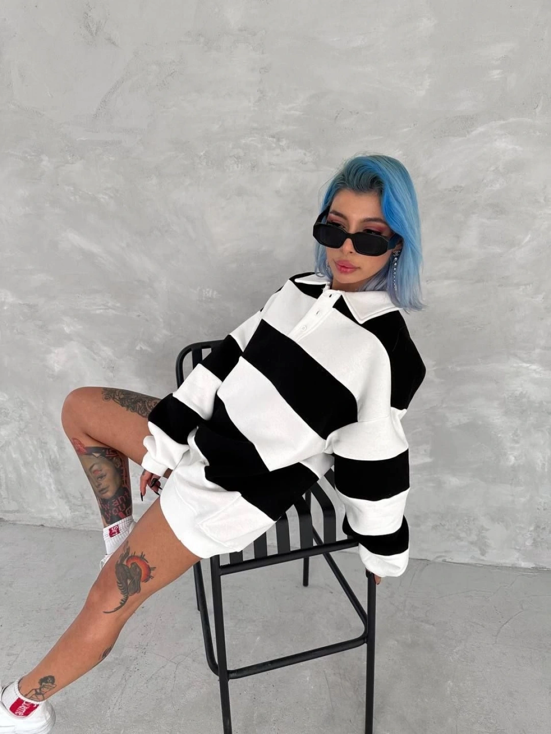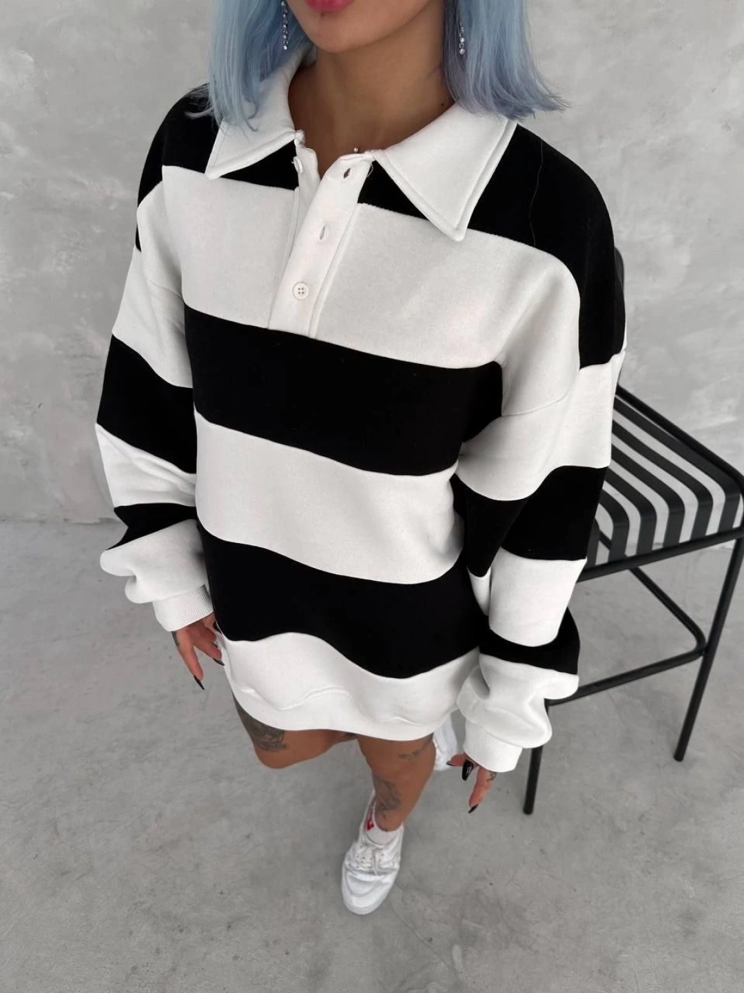 Unisex Üç İplik Parçalı Yakalı SweatShirt - Siyah