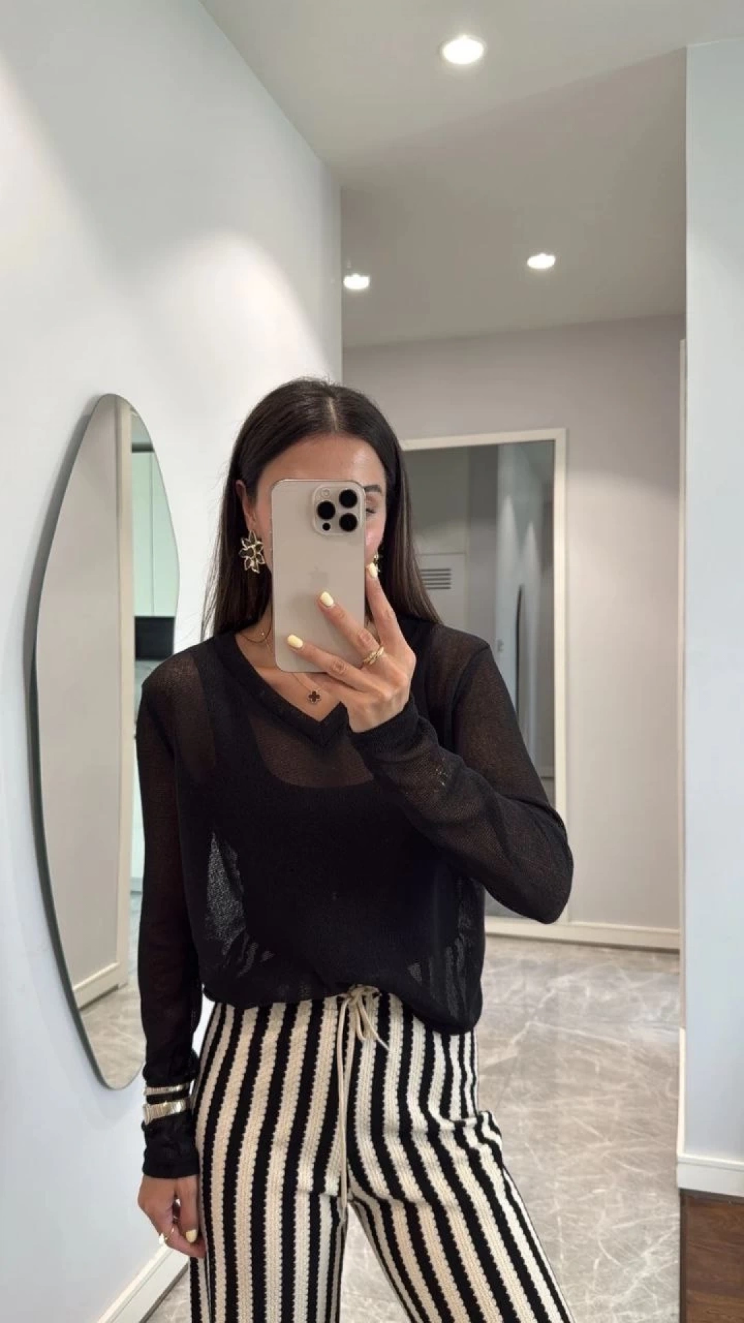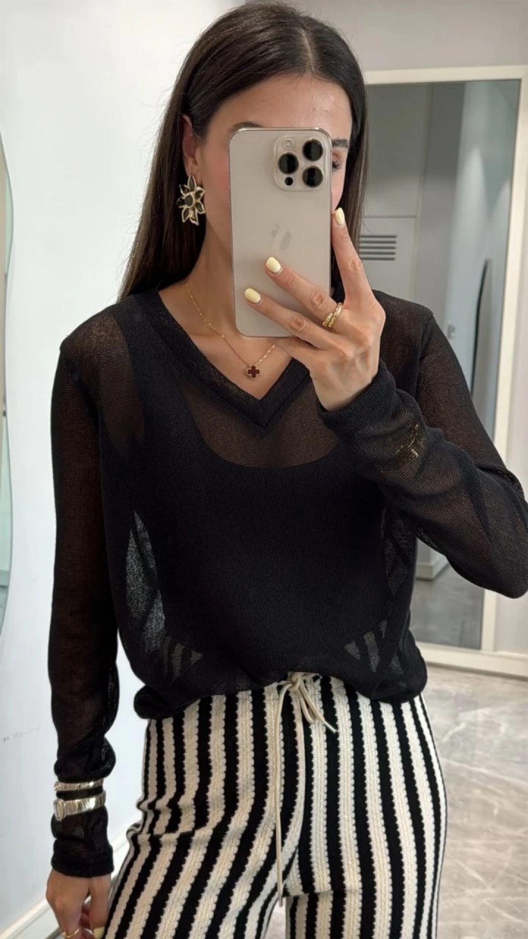Detay | Bluz , Uzun Kollu , V Yaka |