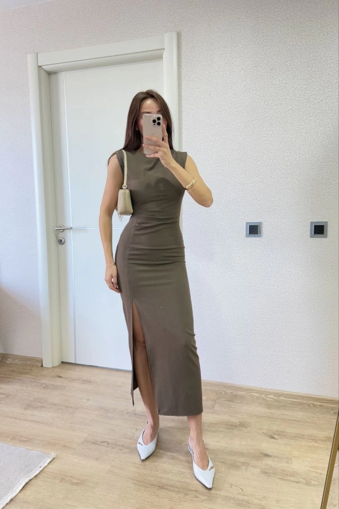 Detay | Kolsuz , Uzun Elbise , Yırtmaç |